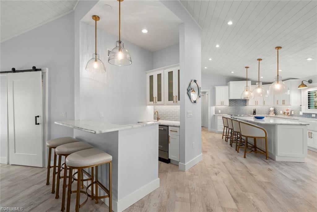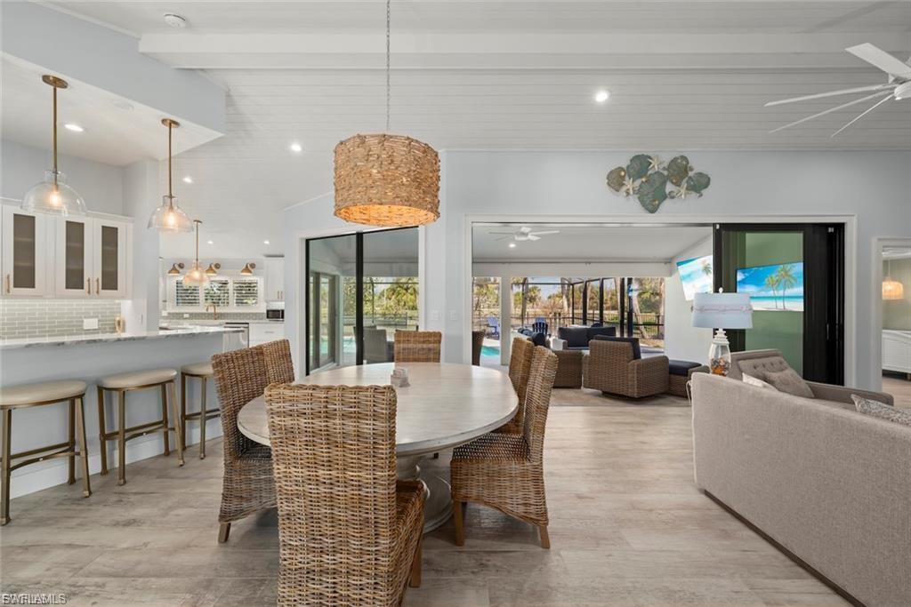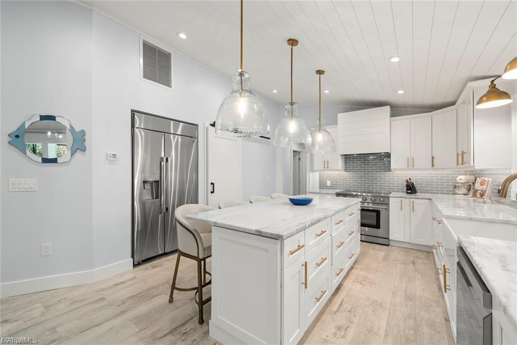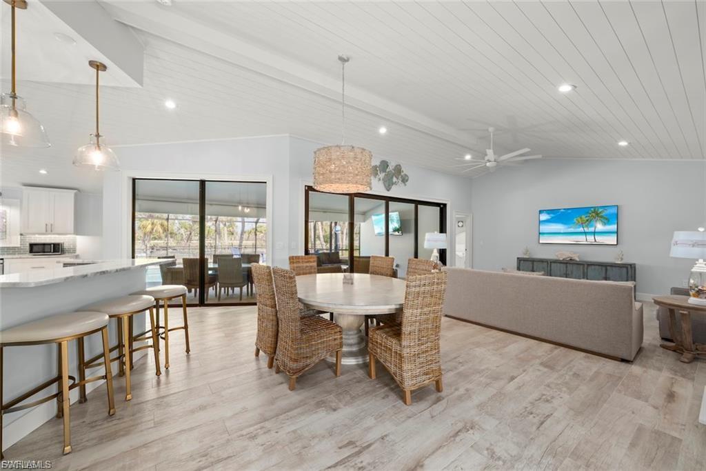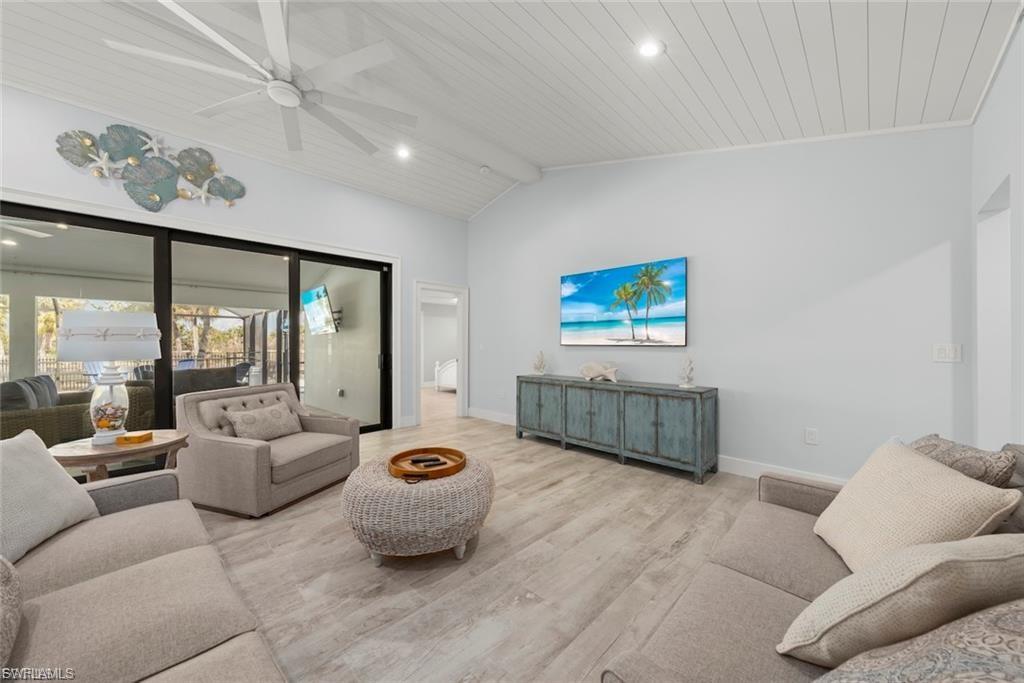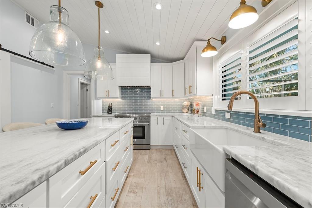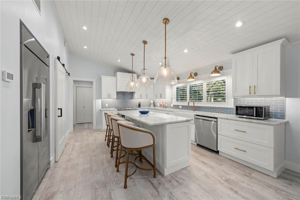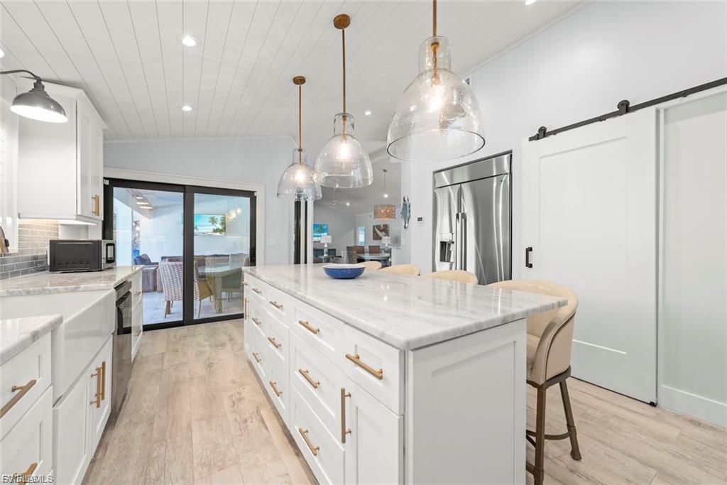 Located just steps from private deeded beach access in the coveted beachside development of Château Sur Mer, this beautifully remodeled 4-bedroom, 3-bathroom home offers the perfect blend of luxury, privacy, and convenience. Situated on a serene lakefront parcel overlooking preserve with .6 of an acre, this exceptional property features serene views of native wildlife and the tranquil surroundings. The home was meticulously renovated by Kennedy Construction and is truly a contemporary beauty. The spacious, open-concept living areas are designed for both entertaining and enjoying island lifestyle. Whether you're hosting guests or relaxing with family, this home offers an ideal indoor-outdoor flow. The gourmet kitchen is a chef’s delight, featuring a Thermador refrigeration wall, built-in microwave, slide-in cooktop with hood, and dishwasher. The stunning Level 5 Quartzite countertops are complemented by a vitreous glass backsplash and custom cabinetry, making this space both functional and visually striking. The split-bedroom layout provides ample privacy, making it an ideal setup for owners and guests alike. The luxurious primary suite includes a beautifully crafted bath with shiplap walls and custom closet built-ins, ensuring a retreat-like atmosphere. High-end finishes extend throughout the home, including custom window treatments and a programmable Lutron lighting system. Other thoughtful improvements include a resurfaced saltwater pool with new interlocking pavers, a new seamless metal roof installed in 2017, impact glass windows and doors, and a newly fenced portion of the yard. This property is not only an elegant family residence but also offers excellent investment potential, given its proximity to the white sandy beach, charming Captiva Island, local amenities such as the Sanibel School, recreation center, CROW, and the Shell Museum. Golf carts are approved for travel within Château Sur Mer, making daily life even more convenient and enjoyable. With deeded beach access just steps away, this home truly embodies the best of island living.