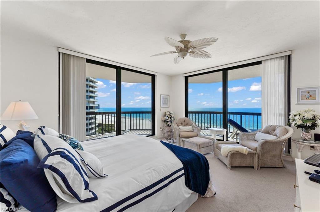 Welcome to The Duchess ... one of the premier condominiums on beautiful Marco Island. Step into the secured, and beautifully designed, lobby where you'll be mesmerized by the towering ceilings. Then, ascend up the glass elevator as you take in the panoramic views of the island and Barfield Bay. As you enter the impressive double door entry into your new home, the views of the Gulf of America are sure to take your breath away. The eat-in kitchen, previously renovated by Cornerstone Kitchens, is a cook's delight with double wall/convection oven, granite, stainless appliances, large pantry/utility room with an abundance of cabinetry, and pass through window that overlooks the dining area. The generous great room, measuring 30x28, is nothing short of impressive and opens to the wrap-around, 600 sq ft lanai. Located just off the living area through French doors, is the stunning primary suite that boasts two sets of sliders that provide panoramic views of both the city and Gulf. Primary bath is well-appointed with double sinks, large soaking tub, plus separate shower, while the second en-suite offers a combo tub/shower. The third bath is located just outside the 3rd bedroom and features a walk-in shower. The most impressive feature of this home is its sunrise and/or sunset views from literally every room! The layout and lanai area make this home the perfect space for those to love to entertain! The most sought-after stack in The Duchess (1), this home will not disappoint! Amenities include a community pool and BBQs overlooking the Gulf, spa, fitness center, tennis/pickleball, plus guest suite available for short term rentals by owners. Other features include secured under-building parking for added security, ample guest parking, plus extra storage off the lanai with additional storage in the building. The focal point of The Duchess is its access to miles of pristine, white sandy beaches overlooking the beautiful turquoise waters of the Gulf. Walking distance to J W Marriott, Tiger Tail Beach Park, plus a myriad of shopping and dining options, there is something for everyone! Your dream home awaits!