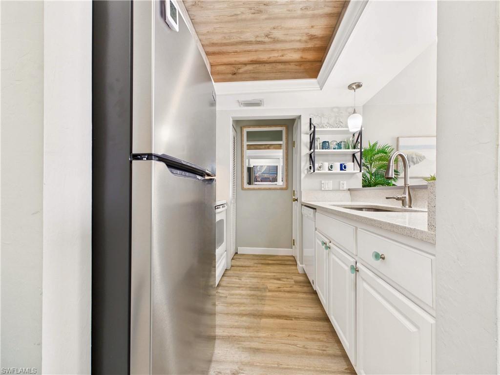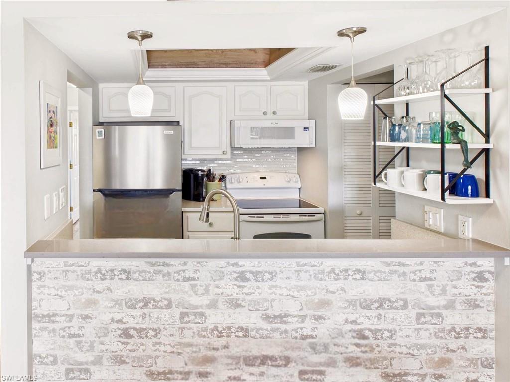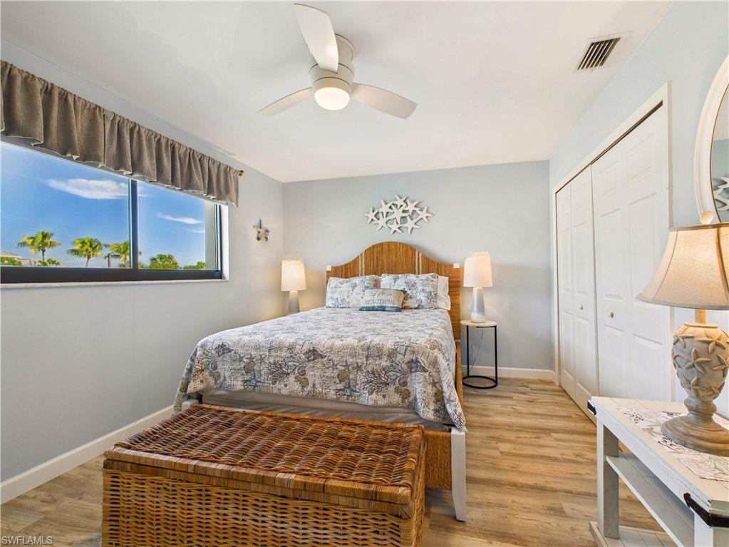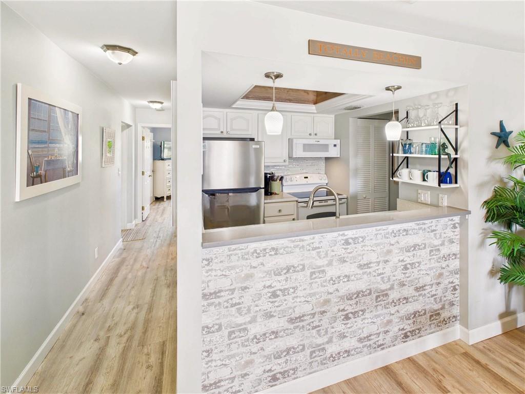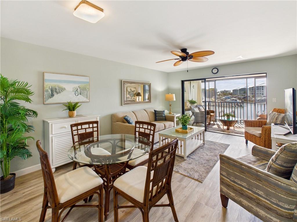Welcome to your Coastal Chic getaway—where every day begins with sunlight reflecting off the marina and the peaceful sound of boats drifting by. Located at Estero Island Yacht & Racquet Club, this beautifully updated 1-bedroom, 2-bath condo combines modern finishes with that effortless island vibe buyers crave. The location? Truly unbeatable! You’re one block from the Gulf’s white-sand beaches and surrounded by restaurants, shopping, and everything Fort Myers Beach has to offer. Even better—WEEKLY RENTALS ARE ALLOWED, giving you rare flexibility to enjoy the condo when you want and generate strong rental income if you prefer! This second-floor beach condo offers an open layout, featuring luxury vinyl plank flooring throughout, perfect for sandy feet after a day at the beach. The bright kitchen feels like the heart of the home—quartz countertops, stylish cabinetry, modern appliances, a tray ceiling, and custom lighting create a clean, upscale look while maintaining the beachy vibes. The spacious primary suite is calm and inviting, and the second full bathroom gives guests privacy and convenience. Both bathrooms have been refreshed with modern fixtures and finishes. The home boasts impact windows & doors and a new A/C for peace of mind. Slide open the lanai doors and step into your private front-row seat to marina and canal views—perfect for morning coffee, remote work with a breeze, or a glass of wine at sunset. Community amenities include: Heated waterfront pool, lounge areas with grills and tables, Boat slips available for private purchase, Lush, tropical landscaping and quiet walking paths, & a convenient laundry facility If you’ve been searching for a home that feels like vacation the moment you walk in… this is the one. Live coastal. Live waterfront. Live Coastal Chic.