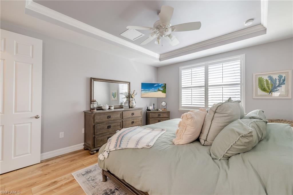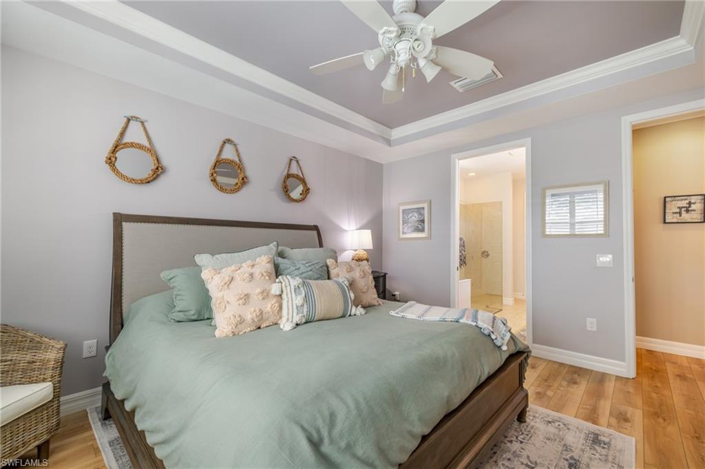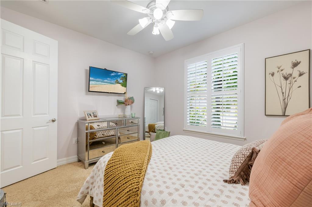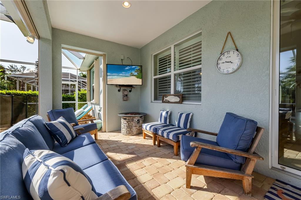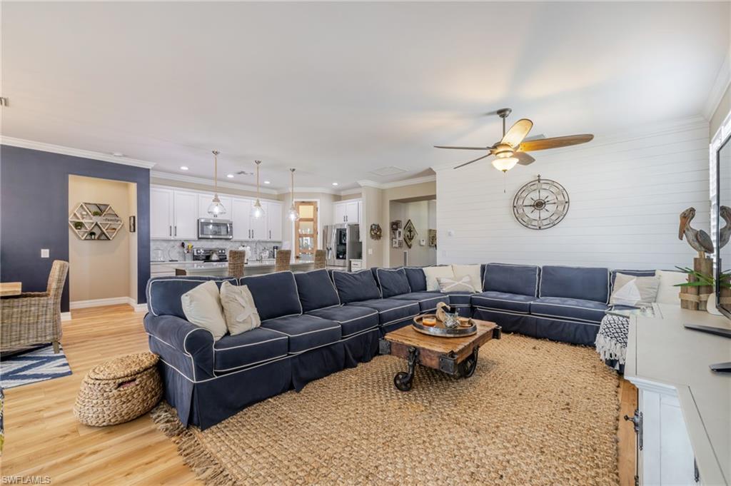 Welcome to Verona Walk, a premier resort-style community offering luxury, comfort, lakeside tranquility, and convenience! X-Flood Zone - no flood insurance required. This beautifully updated ONE-OWNER, 3-bedroom + Den, 2-bathroom home with a 2-car garage and 2,188 sq. ft. of living space showcases elegant upgrades and thoughtful details throughout. Enjoy Southern exposure and a private backyard oasis featuring a lake view, and heated chlorine pool & spa, perfect for year-round relaxation. Step inside to find a bright, open-concept floor plan with fresh interior paint (2022), crown molding, Bermuda shutters, and all-new light fixtures and fans for a refined coastal feel. The 2022 kitchen makeover includes a well-organized and decorated pantry, stunning quartzite countertops, new stainless steel appliances, and stylish finishes that make it the heart of the home. Bathrooms have been tastefully refreshed with quartz counters, new vanities, and updated guest shower tile. Additional highlights include Storm Smart lanai hurricane screens, accordion shutters, two charming shiplap accent walls, an oversized laundry room, attic storage, and an epoxy-coated garage floor. The exterior was freshly painted in 2023, ensuring modern curb appeal and lasting value. Located in one of Naples’ most sought-after communities, Verona Walk offers a full array of amenities—Lagoon pool, lap pool, pickleball, fitness center, Verona Café, Pink Frog Café, farmer's market, post office, gas station, and beauty salon. Enjoy miles of scenic walking and biking paths—all just minutes from dining, shopping, and beaches. Move-in ready and meticulously maintained—this home captures the best of Naples living!