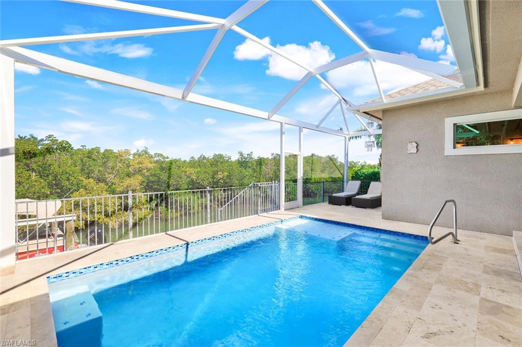 Welcome to your waterfront, DIRECT gulf access, Marco Island, FL hideaway with no HOA. This home is like new, meticulously built and ready for you! Home's foundation sits on a reinforced stem wall supported by concrete pilings with bottom floor elevation of 11.4' above sea level! This stunning 3-bed, plus den, 2.5-bath custom home is the epitome of coastal living. Newly built in December 2022, it features high-end finishes and upgrades throughout. The heated and salt water pool offers year-round swimming opportunities. For nature enthusiasts and bird watchers, this home offers the privacy of mangroves right in your backyard. Most direct access canal homes have other homes as their backyard view, but not this one! The home is also conveniently situated just minutes away from Publix Supermarket, Resident's Beach, dining, and shopping. The outdoor space offers a built-in kitchen, screen enclosed lanai, and 4 new pilings that hold the boat lift. Schedule a visit today!