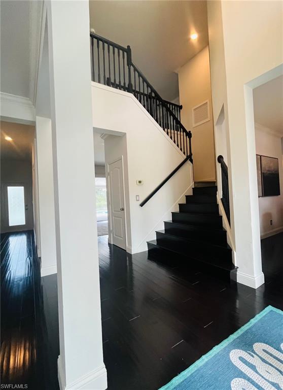 Well maintained 5/3 on a quiet cul-de-sac in Stoneybrook. House sits on an oversized lot; privacy shrubs in the backyard to enjoy swimming in solitude. Enjoy peaceful wildlife sightings from your living room; no golfers in your backyard here! Second floor enclosed master bedroom patio with privacy screen. ALL under 5 years old: tile floors, engineered hardwood floors, carpet, painted interior and exterior, wrap-around house gutters, crown molding in every room, larger baseboards, electric AND solar pool heating, salt chlorinator, Hunter Douglas motorized window shades, wood bedroom window blinds, double front doors, motorized lanai awning for covered outdoor entertaining spanning 32 feet wide 10 feet deep, concrete lanai pavers and complete pool surface refinishing, LED pool cage multi-colored lighting, lanai cage including massive 50 ft picture window screen, bar-height lanai granite countertop, pool autofill, every electric/ plumbing fixture, fan remotes, master bath complete overhaul, walk-in master closets with locking storage, kitchen pantry fitted with cabinets and counter with outlets. Microwave functions as third oven for hosting. Stoneybrook HOA has approved architectural plans expand the current driveway and to add a third garage or extra parking spots. Go fishing in your backyard! Must see to appreciate the views from this house.