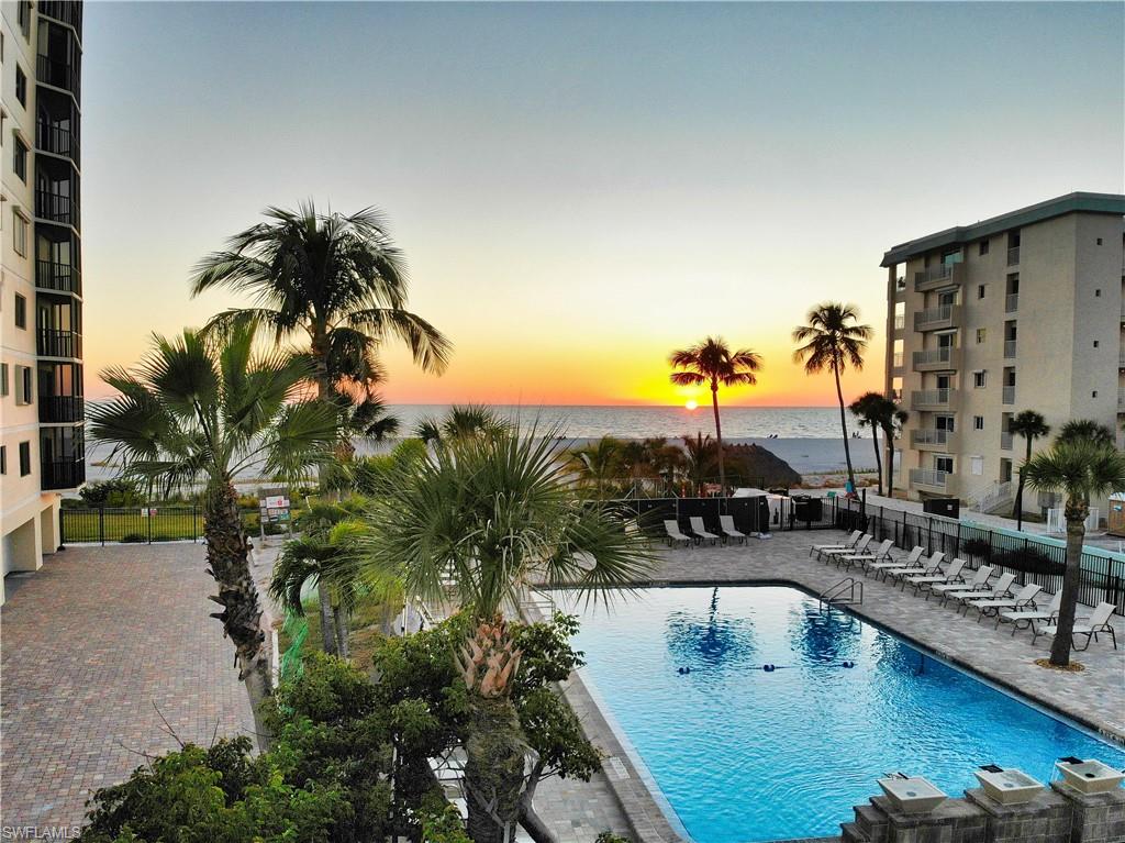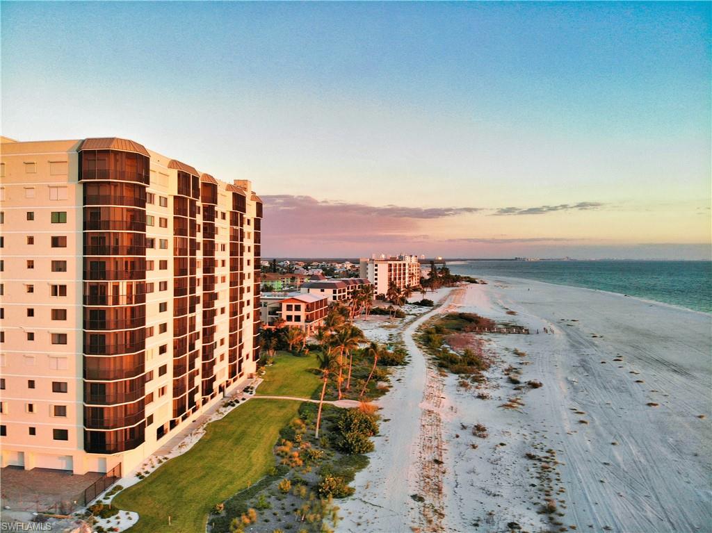 Whether you are searching for a remarkable beachfront residence or a smart investment opportunity, this 11th-floor condominium at The Riviera Club offers the ultimate beachfront lifestyle. Perfectly situated on the widest and most desirable stretch of Fort Myers Beach, this residence showcases panoramic views of both the tranquil Bay and the sparkling Gulf. The living room, dining area, and kitchen all feature commanding views of the beach and breathtaking sunsets, while the main bedroom also captures stunning water vistas. The open, light-filled floor plan includes two spacious bedrooms, two beautifully updated bathrooms, and a convenient interior laundry closet. Offered turnkey furnished, this residence allows you to begin enjoying your coastal retreat immediately and includes impact-resistant windows along with storm shutters for peace of mind. Some of the lowest condo dues on Fort Myers Beach and a brand-new, fully paid-for clubhouse under construction add to the property’s exceptional appeal. Ideally located near Lovers Key State Park, marinas, waterfront dining, boutique shopping, and the beach trolley to Times Square. This is beachfront living at its finest - elegant, effortless, and endlessly inspiring.