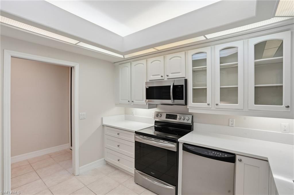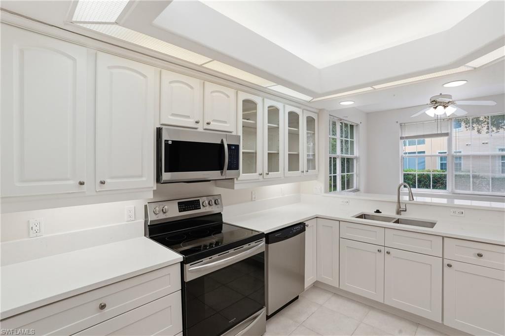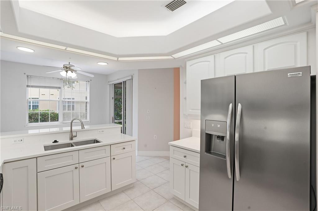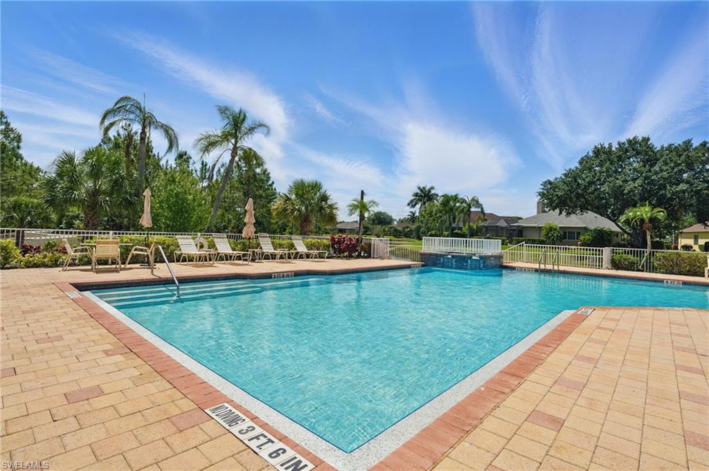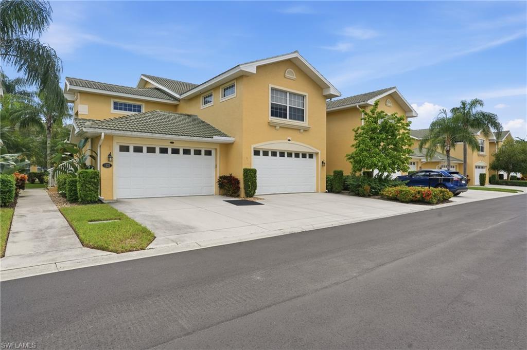 Just Renovated! Welcome to this spacious 3-bedroom, first-floor end unit in one of North Naples’ most sought-after communities. Designed in a desirable coach-home style, this residence includes a large 2-car garage and is perfectly positioned just steps from the pool, clubhouse, tennis courts, and scenic bike paths—bringing everyday convenience and resort-style amenities right to your doorstep. Inside, you’ll find an inviting eat-in kitchen featuring solid surface counters, glass-front cabinets, tiled backsplash, built-in bookcase, and newly improved features including updated kitchen cabinets, a new dishwasher, and fresh carpet in the bedrooms. The home also offers thoughtful upgrades throughout, including designer light fixtures, extra closets and outlets, and a beautifully customized primary bath with a walk-in tiled shower, spacious linen storage, and extended counter space. Located near everything you need—from I-75 to endless shopping, dining, and Naples’ beautiful beaches—this home brings comfort, convenience, and the relaxed Florida lifestyle together in one welcoming space. Whether you're starting your day on the lanai or winding down after a swim, it’s the kind of place that simply feels like home.