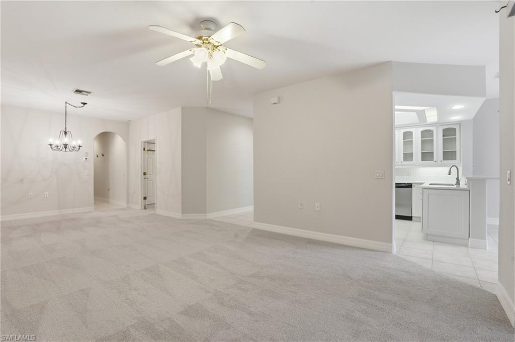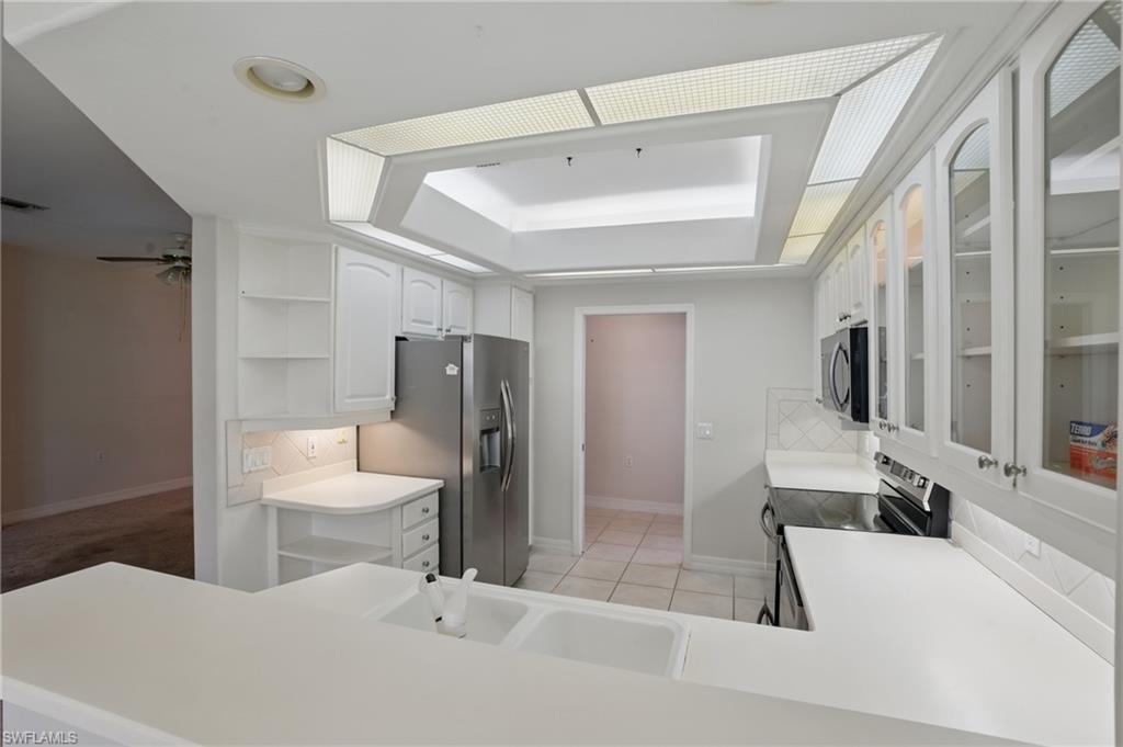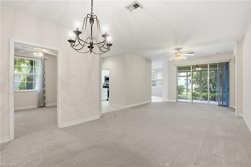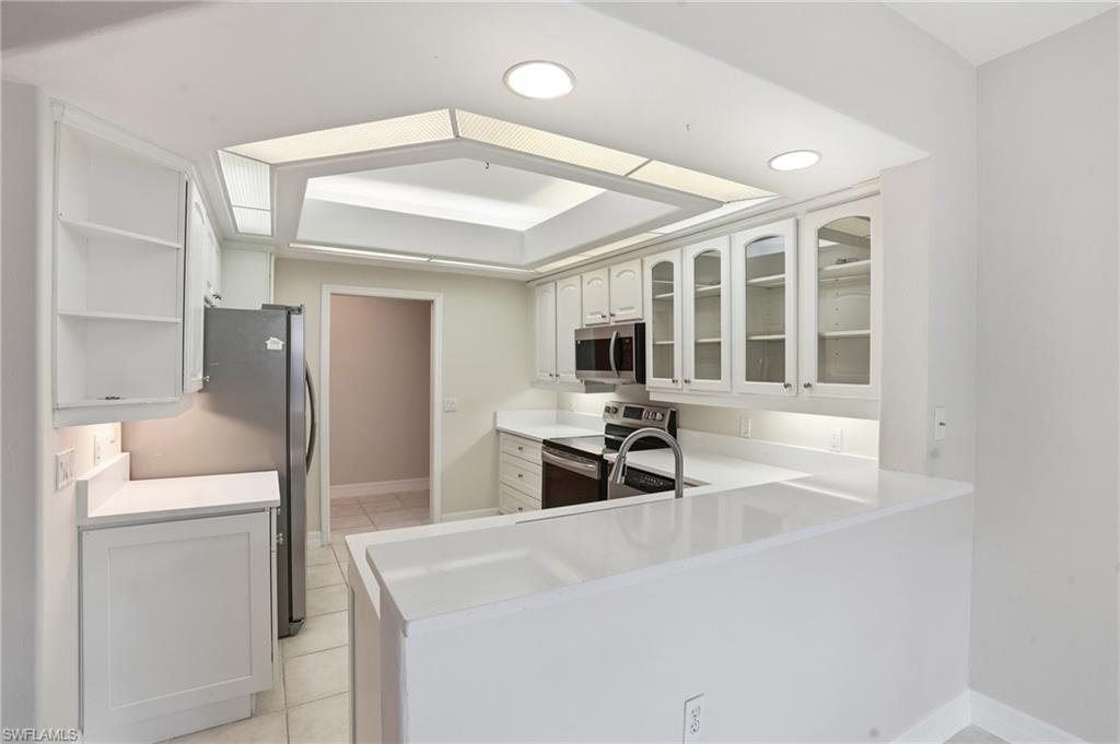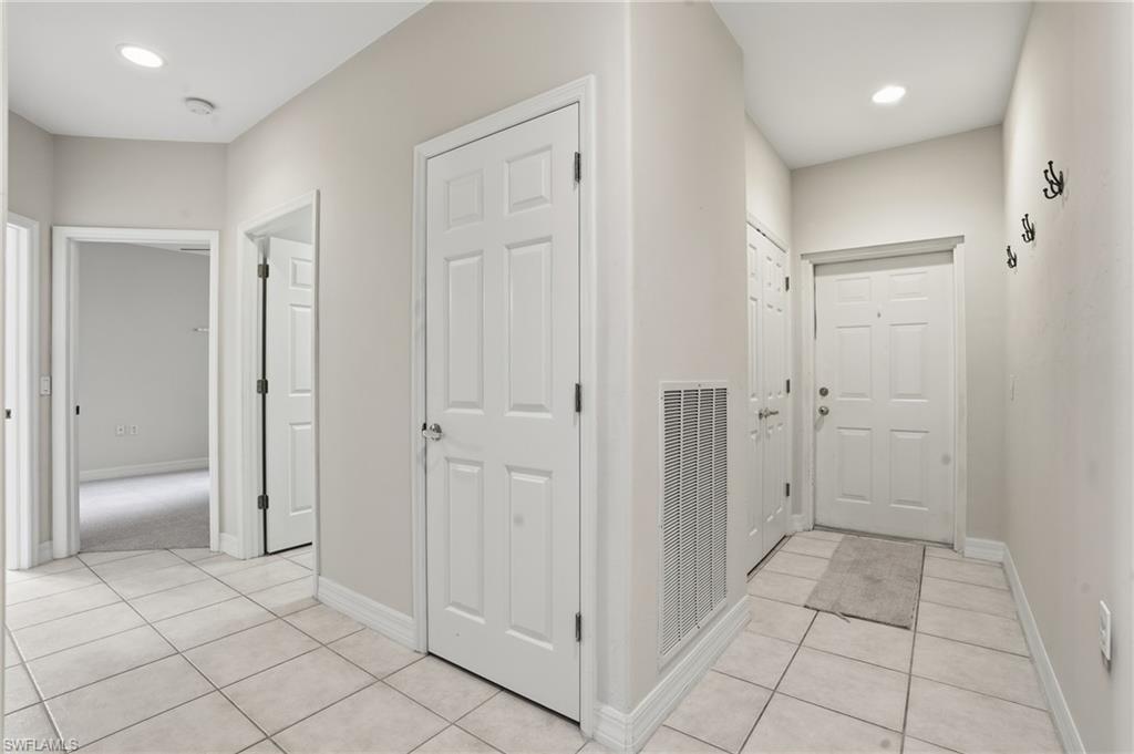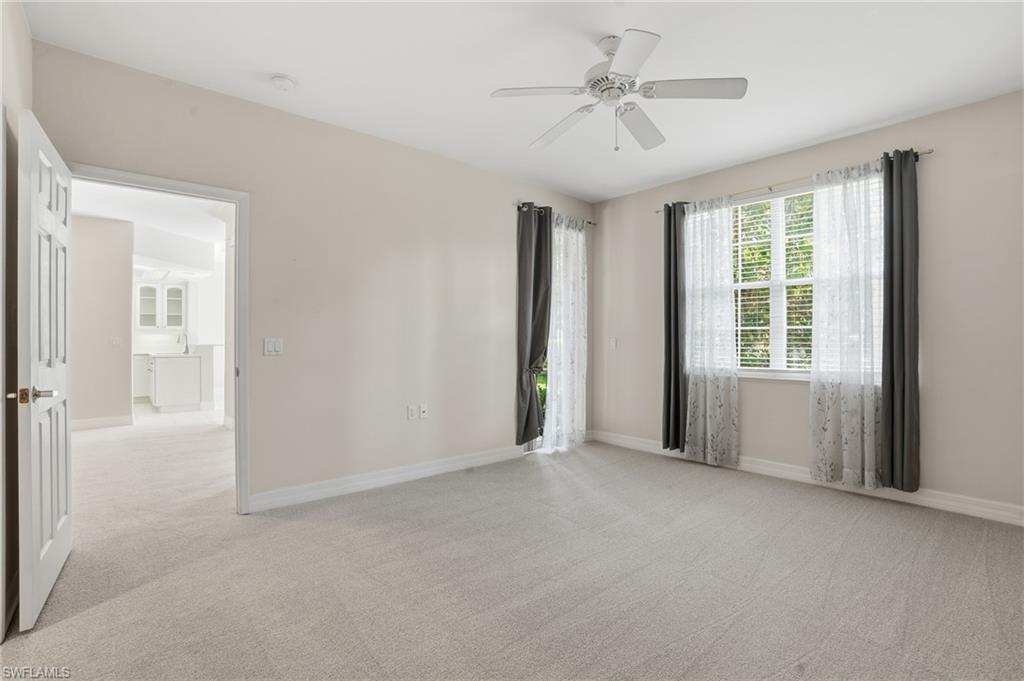 Just Renovated! Welcome to this spacious 3-bedroom, first-floor end unit in one of North Naples’ most sought-after communities. Designed in a desirable coach-home style, this residence includes a large 2-car garage and is perfectly positioned just steps from the pool, clubhouse, tennis courts, and scenic bike paths—bringing everyday convenience and resort-style amenities right to your doorstep. Inside, you’ll find an inviting eat-in kitchen featuring solid surface counters, glass-front cabinets, tiled backsplash, built-in bookcase, and newly improved features including updated kitchen cabinets, a new dishwasher, and fresh carpet in the bedrooms. The home also offers thoughtful upgrades throughout, including designer light fixtures, extra closets and outlets, and a beautifully customized primary bath with a walk-in tiled shower, spacious linen storage, and extended counter space. Located near everything you need—from I-75 to endless shopping, dining, and Naples’ beautiful beaches—this home brings comfort, convenience, and the relaxed Florida lifestyle together in one welcoming space. Whether you're starting your day on the lanai or winding down after a swim, it’s the kind of place that simply feels like home.