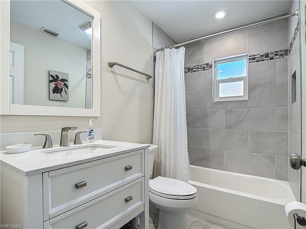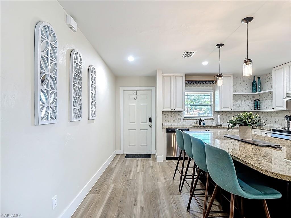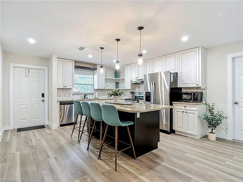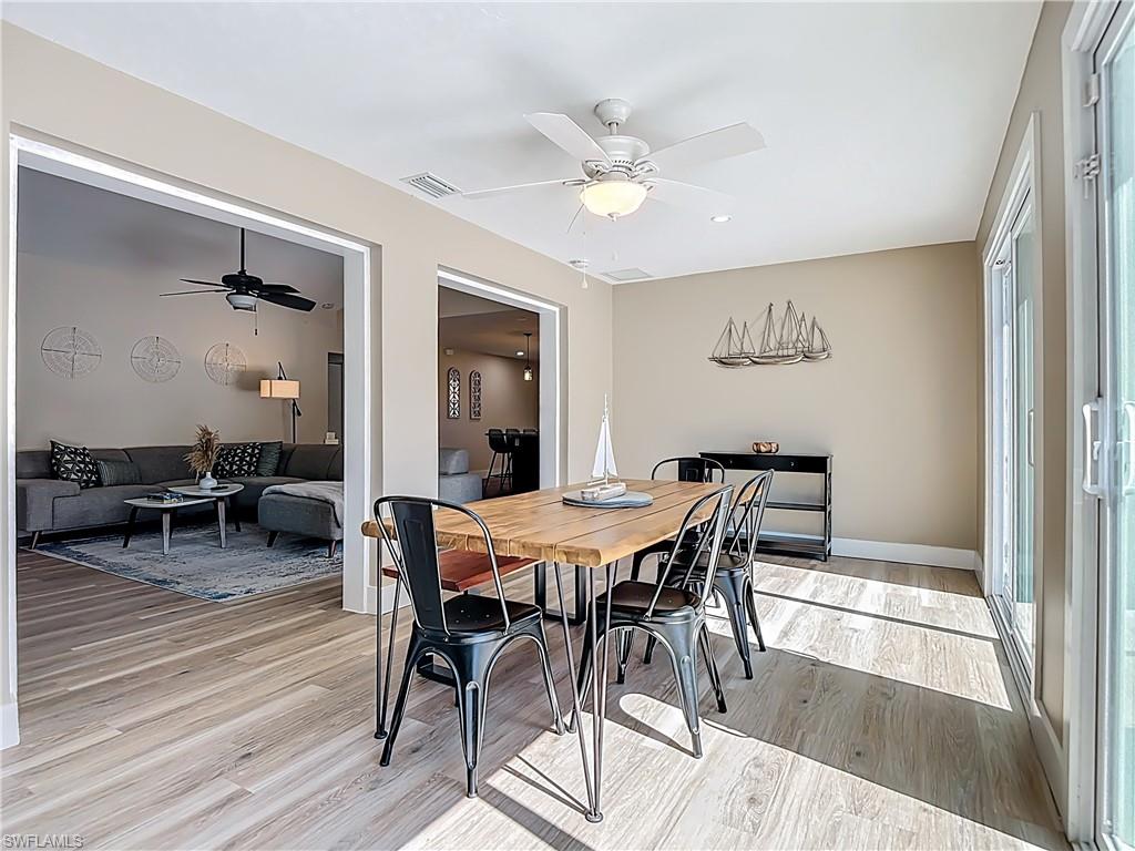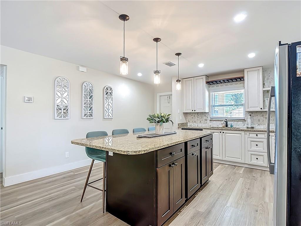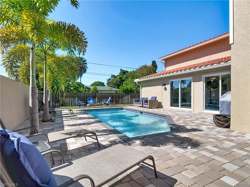 Great location in Bonita Springs, right off Pennsylvania AVE, minutes to the beach, entertainment, community events, shopping and dining. This stylishly decorated, upgraded and meticulously maintained single-family home on Pelican Ridge Circle is move-in or Airbnb ready! Three bedrooms and 2 bathrooms with an eat-in or cocktail kitchen, and a separate dining area. The living room is spacious enough for family and friends to gather. The Primary bedroom has two entrances, a large private bathroom with dual sinks & tiled shower, a walk-in closet and a separate "owner's closet". The two guest bedrooms share a bathroom with tub and shower. Hurricane windows and sliders and luxury plank tile throughout. Two-car garage with washer, dryer and a laundry tub. Step outside to the huge fenced in yard with newer HEATED POOL, outside grill, firepit and a privacy wall. While the home is on city water and sewer, the irrigation is on a well. This home is right down Pennsylvania Ave to the downtown area of Bonita Springs, the historic district, Riverside Park, Sugarshack Downtown, civic area, minutes to the beach, shopping and dining, Publix Grocery store, Coconut Pointe Mall... you are near everything! You and your guests are going to love it here!