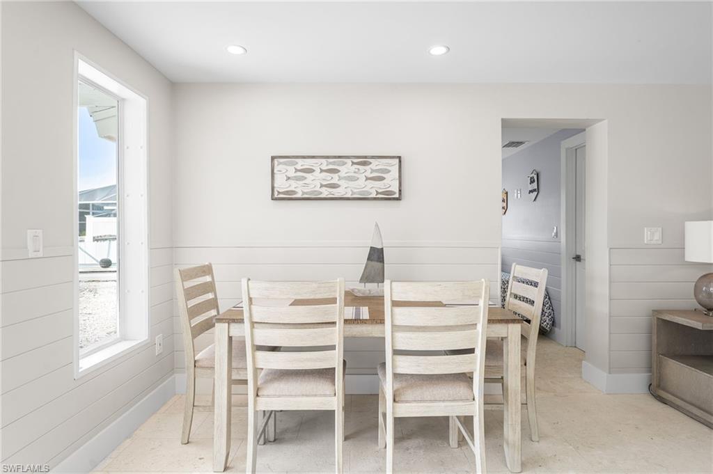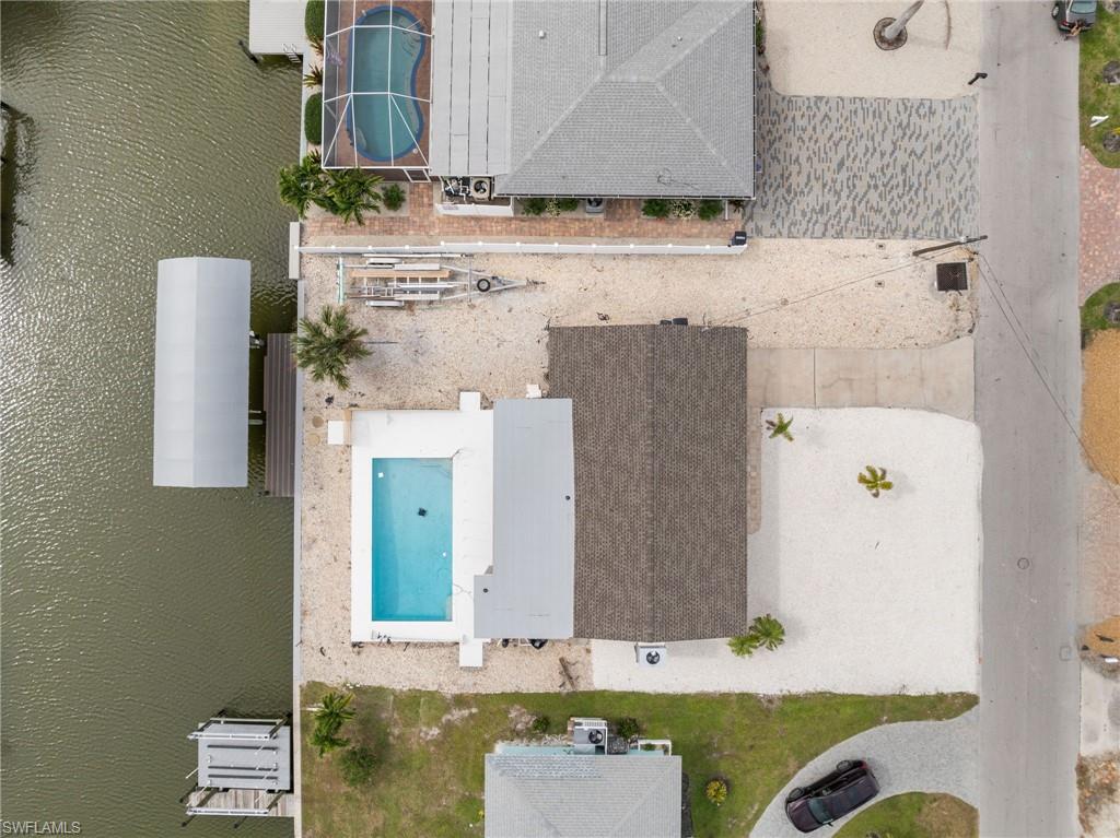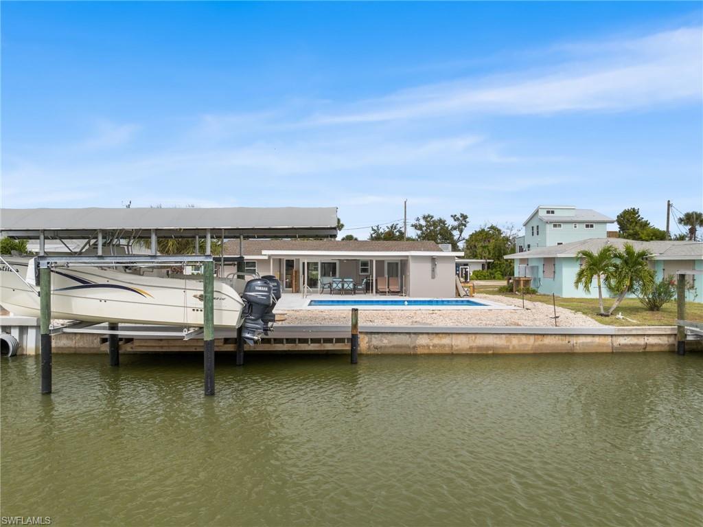 Completely renovated 3BR/2BA Island pool home! Centrally located and fully updated from top to bottom — this CBS-built home feels brand new! Upgrades include: new roof (2025), hurricane-impact windows & doors, all new electric, plumbing & mechanicals, Bosch 22 SEER super high efficient heat pump, foam attic insulation, and 18KW tankless water heater (2024). Interior features: freshly painted inside & out, new interior doors and trim, coastal-style cedar wainscoting, soft-close Shaker cabinets, exotic quartz countertops with stone backsplash, and all-new stainless steel appliances (2024) including a GE Advantium microwave/oven combo. Both bathrooms completely remodeled with curbless tile showers, vessel sinks, and modern vanities for style and accessibility. Outdoor highlights: pool resurfaced in 2022 with new coping, a stamped concrete deck, large pool heater for year-round enjoyment, outdoor shower, and covered entertaining area. Boaters will love the 10,000 lb boat lift with new cover, bunks, and motors. A new white screen enclosure for the pool is coming soon! Rare southern exposure gives 18x24 pool and pool area all-day sunshine — nothing left to do but move in, relax, and enjoy island living!