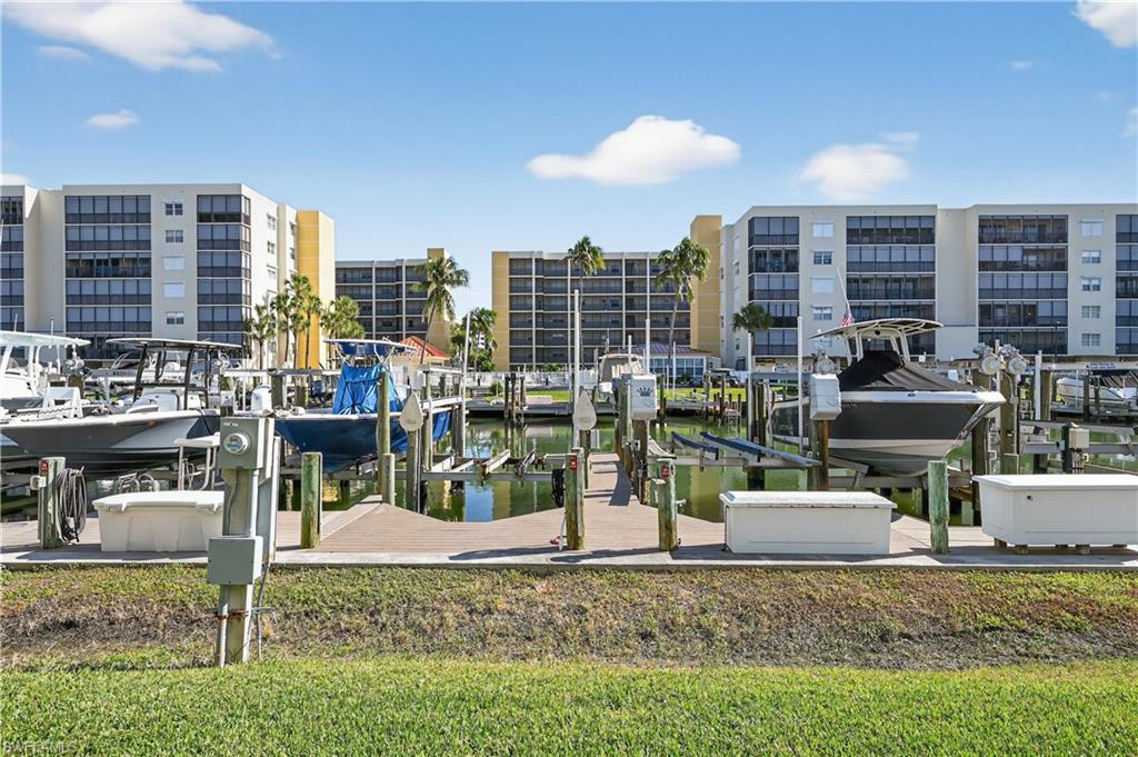 PARADISE LIVING-Stunning Fort Myers Beach canal-front townhome offering the ultimate Florida waterfront lifestyle with assigned under-building parking, private boat dock and lift, direct access to the Back Bay and Gulf for effortless island hopping, fishing, and sunset cruises. This turnkey, light-filled 2-story home has 2 spacious ensuite bedrooms plus a convenient half bath on the main level. Enjoy breathtaking water views from the living and dining areas and from both master suites; the primary suite features a private balcony and ensuite bath with step-in shower. The open main level includes new flooring in the living room and a screened lanai excellent for morning coffee or evening breezes — laundry is conveniently located off the main bedroom lanai. Recent building upgrades provide peace of mind: new plumbing throughout the building, new metal roof, fresh paint and landscaping, and ongoing lanai updates (paint, railings, screens). Community amenities are exceptional: two centrally located pools, expanded pool area, clubhouse with recreation room and kitchen, shuffleboard, BBQ grills and picnic tables. All ideally located just minutes from all things on the beach.