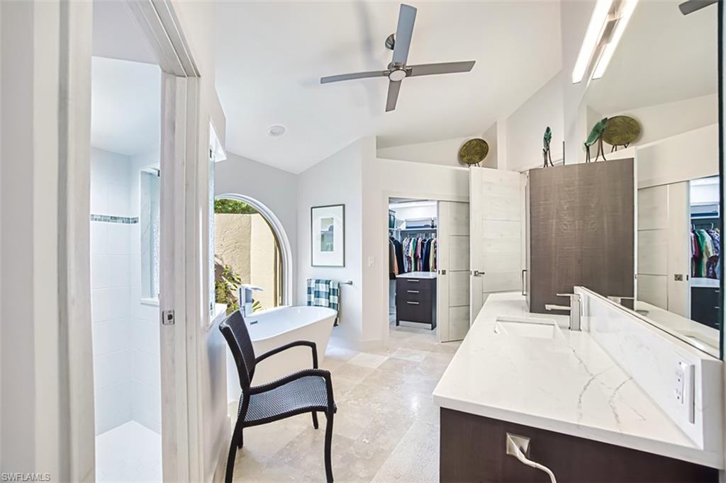 Sweeping water views will greet you when you walk into this spectacular island home. This sophisticated, contemporary home has been completely renovated with high-end finishes throughout. The popular great room design features vaulted ceilings, an electric fireplace, a peninsula breakfast bar, large dining area and a dream kitchen. Living and entertaining areas in the great room flow out to an oversized lanai where you and your guests will experience calm and relaxation while enjoying the peaceful, expansive water views. Enjoy swimming in the free form pool or soaking in the hot tub. The spacious primary ensuite boasts a sitting area, a walk-in closet/ dressing room, dual vanities and a garden soaking tub. Split bedroom design affords privacy for all. There is abundant storage throughout the home- even a bonus flex room off the laundry for additional storage, or it could serve as a craft room, an artist’s studio or an exercise area. Partially elevated, this home also features impact glass. The two car+ garage has room for both cars, a golf cart and bicycles. An EV charging station is already in place. Located in the popular Dunes neighborhood, this east end location is close to the beach, the bay and offers easy on/off access to the island. If you are looking for a “WOW” factor, you need to see this home.