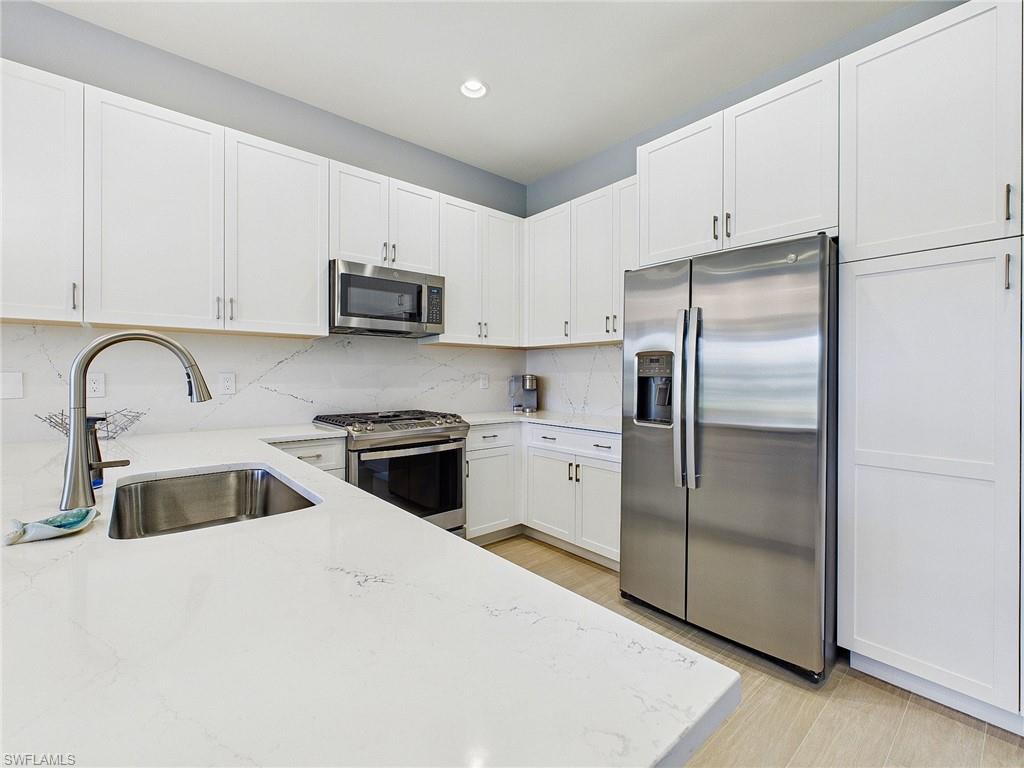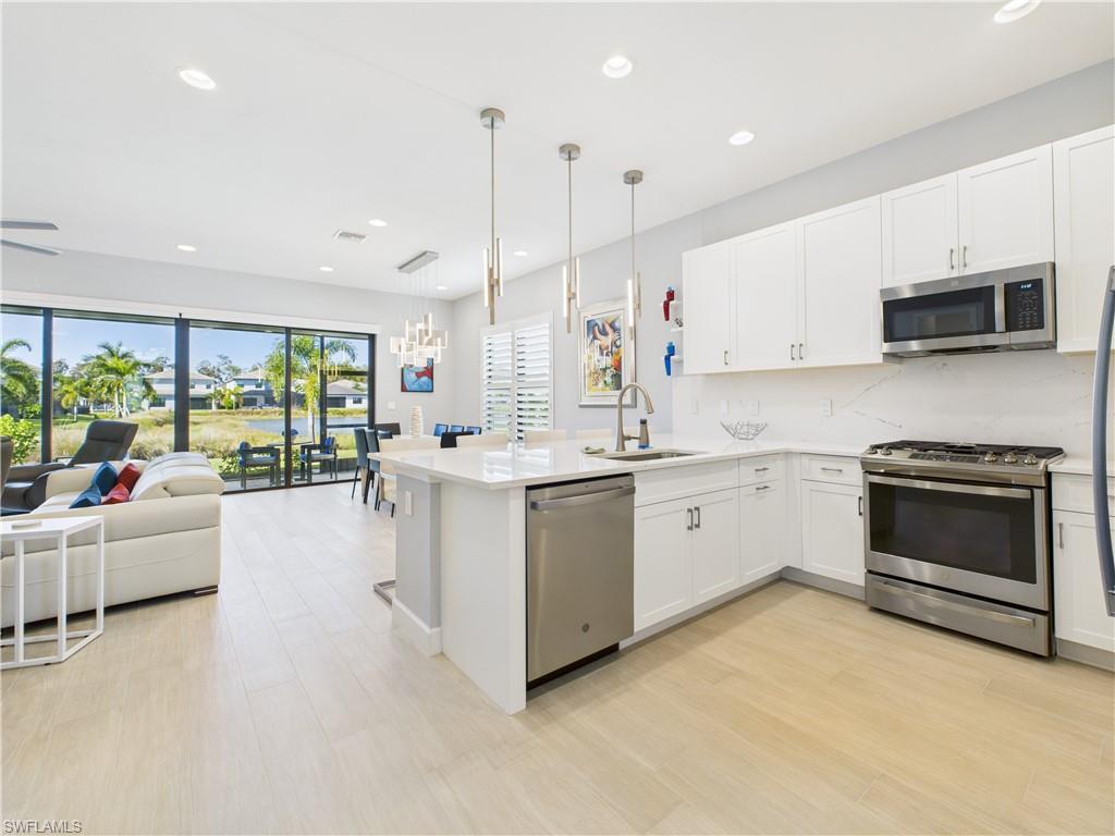 Welcome to this stunning lakefront home, built in December 2023 by award-winning GL Homes, located in the highly sought-after Corkscrew Corridor. This single-story residence offers 3 bedrooms + den (or optional 4th bedroom), 3 bathrooms, Impact-resistant windows and doors for peace of mind and provides 2,135 sq. ft. of living space with a 2-car garage. Designer upgrades throughout: new high-end lighting, fans, and plantation shutters, fresh interior paint and tile plank flooring for a modern, cohesive look. Quartz countertops make the chefs kitchen a delight along with 42" white shaker cabinets and stainless-steel appliances. Natural gas house w/oven, dryer, and hot water heater for efficiency and performance. Volume ceilings and tall doorways create an open, airy feel, new Kohler toilets, master bath fixtures, and frameless shower door. Custom closet cabinet systems and remote-control solar shades in the living room. New epoxy garage floor for durability and style, tile roof, paver driveway and screened lanai with mounted 55" Smart TV. New landscaping enhances curb appeal and plenty of room in the backyard for a pool. Ring-style Doorbell and Security System. Community & Amenities (opened in December 2024): Located in a gated community of only 554 homes. Residents enjoy low HOA fees and an unmatched amenity package: 12,000 sq. ft. clubhouse with indoor sports complex (basketball, fitness, yoga, billiards, card/game room, catering kitchen, lounge, meeting room). Resort-style pool w/ Cabanas, 6 lighted pickleball courts, 4 lighted tennis courts, bocce ball, outdoor basketball, playground, splash park, firepit, picnic area & sidewalks throughout for easy access to amenities, lawn care, irrigation, exterior pest control, and 24/7 security included. This home combines luxury finishes, modern convenience, and resort-style living in one of Southwest Florida’s most desirable locations close to: Miromar Outlets, Coconut Point, University Village, Gulf Town Center, Florida Gulf Coast University, Lee Health Hospital, Public Golf Courses, Estero Park & Sports Complex, Walking Trails & Bike Paths. RSW AIRPORT & I-75 are just minutes away for easy access to the BAREFOOT BEACH, Fort Myers Beach, LOVER'S KEY and all that NAPLES has to offer! This is the perfect Primary and Vacation Residence or as a Seasonal or Annual Rental for Investors (no waiting period)! Pet Friendly (no weight or number of pets restrictions)!