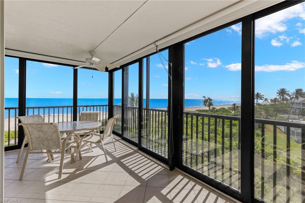 Welcome to island life the way it's meant to be. This top-floor, direct-gulf residence at The Atrium on West Gulf Drive captures the best of Sanibel such as endless views, brilliant sunsets and the soothing sound of waves on shell-laden sands just beyond your doorstep. The desirable southwest exposure fills the home with warm natural light by day and breathtaking sunset views in the evening. Go inside to discover a bright layout featuring two bedrooms with gulf views, two baths, and a versatile office/den that easily converts to a guest space or reading retreat. The well-appointed kitchen is outfitted with stainless-steel appliances, custom cabinetry, and a convenient breakfast bar that is ideal for entertaining or quiet mornings by the sea. A wraparound lanai extends your living space, ideal for soaking in ocean breezes or relaxing in air-conditioned comfort while watching the waves roll in. The Atrium has recently enhanced its lush landscaping, creating a coastal oasis that complements its premier beachfront setting. Enjoy direct access to Sanibel's famous white-sand beach via a private boardwalk or spend your afternoons by the Gulf-side pool. Additional amenities include new pickleball courts, dedicated bicycle storage, covered parking and a private ground-level storage unit for all your beach gear. Top-floor units like this are rarely available at The Atrium, so don't miss this opportunity to experience the best of island living and Sanibel sunsets.