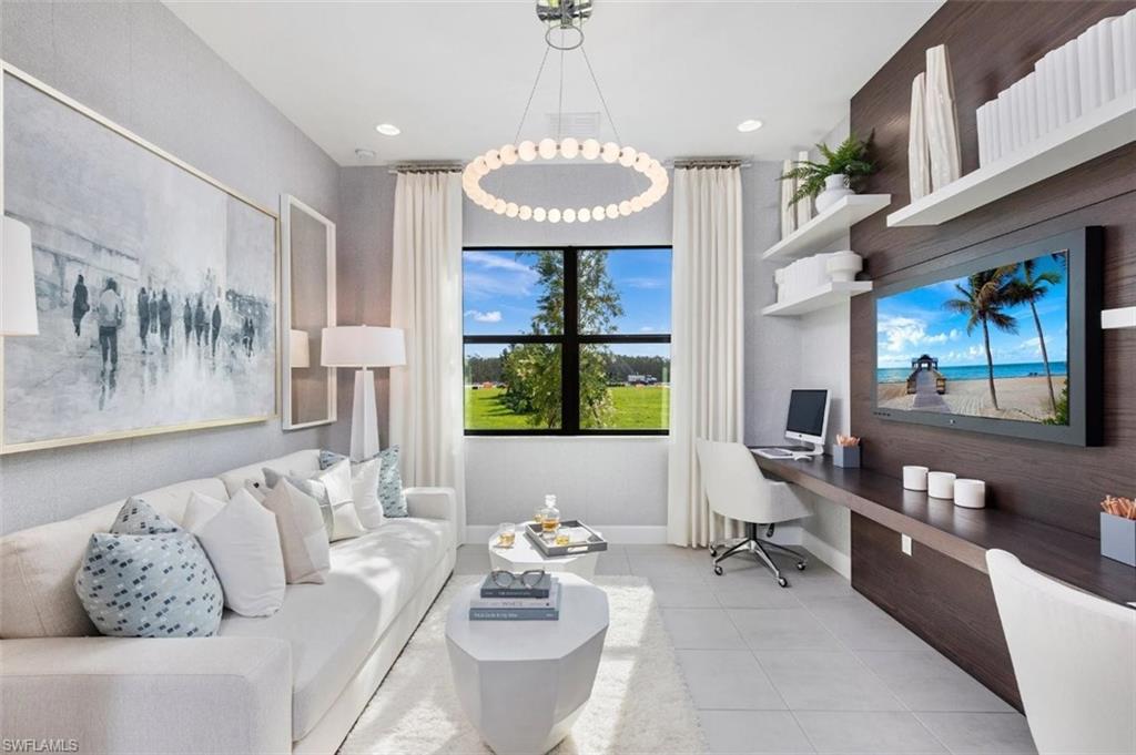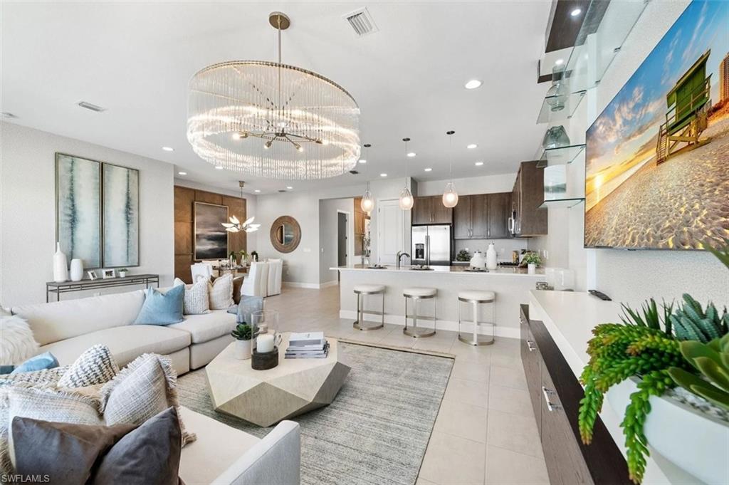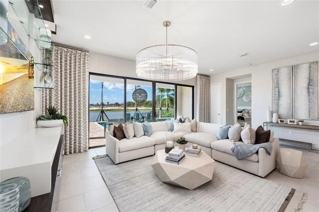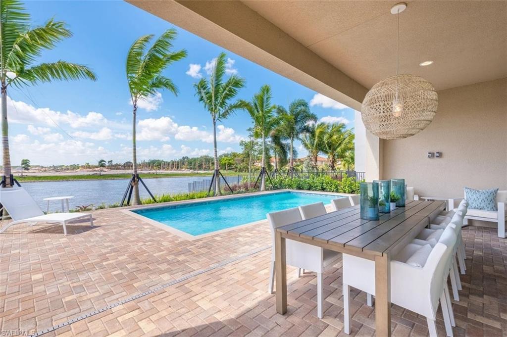 Available February/March 2026! Step into effortless Florida living in this beautifully furnished, designer-decorated pool home, perfectly positioned with peaceful lake views in Rivercreek, Estero. The coveted Acadia model nails the balance between style and comfort, offering two bedrooms, a sunlit den, two full baths, and a spacious two-car garage.Inside, dramatic 13-foot ceilings greet you at the foyer, setting the tone for an open floor plan finished with sleek ceramic tile throughout. The great room is bright, airy, and made for entertaining — thanks to oversized sliding glass doors and a custom entertainment center with floating glass shelves. Whether you're hosting friends in the gourmet kitchen or unwinding beside your private pool and spa (the fenced yard and southern exposure make it feel like your own resort), this home feels exceptional.Retreat to a primary suite designed for relaxation, with dual walk-in closets, a spa-like bath featuring a spacious shower and double sinks, and plenty of natural light. Secluded enough for quiet mornings, stylish enough to impress. The den, fully fitted with a built-in desk and media wall, is ready for your home office or next big project.Expect high-end finishes everywhere: curated millwork, statement lighting, designer window treatments, and handpicked decorative wall coverings. Every inch speaks to thoughtful design.Don’t miss your opportunity to call Rivercreek’s best home your own. The RiverCreek Community has so many things to offer for the entire family such as a 12,000 sq ft Clubhouse with an Indoor Sports Complex, a Resort Style Pool, Fitness Center/Exercise Studio, Event Room, Catering Kitchen, Card Salon, Sports Lounge, Fire Pit, Playground, Splash Park, Lighted Courts for Pickleball, Tennis and Bocce. That's over 4,000 Acres of Amenities! This is a rare chance to move right in to a professionally decorated, waterfront home where every detail feels just right.