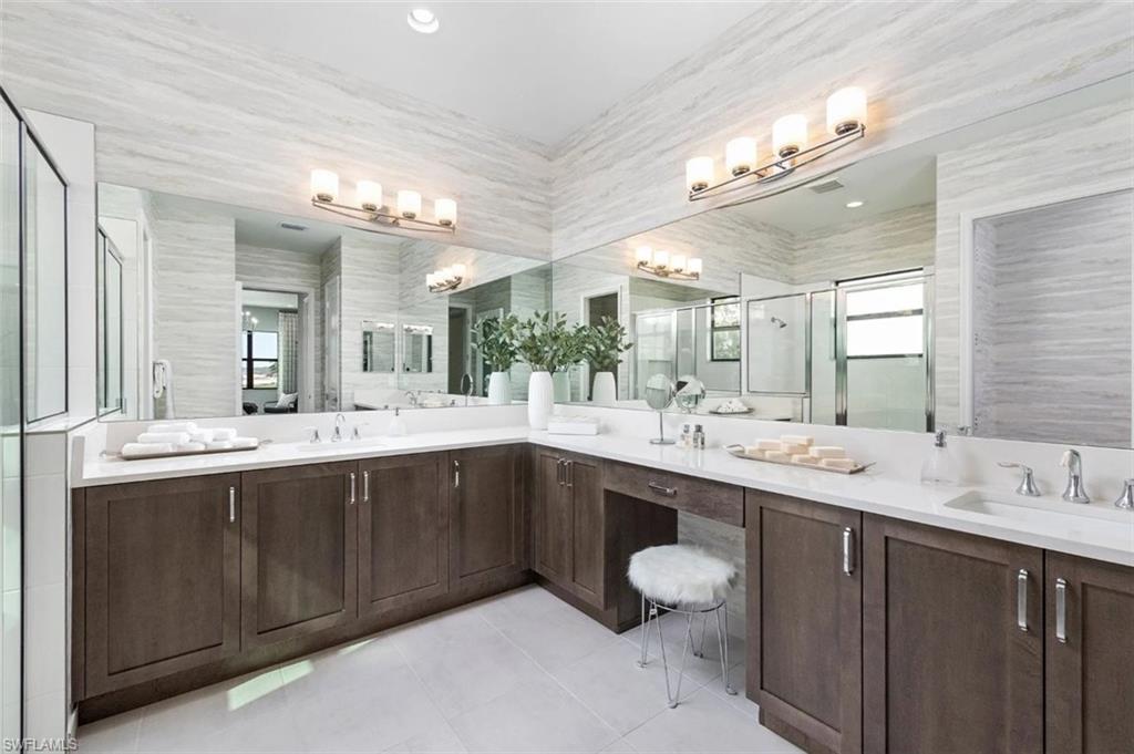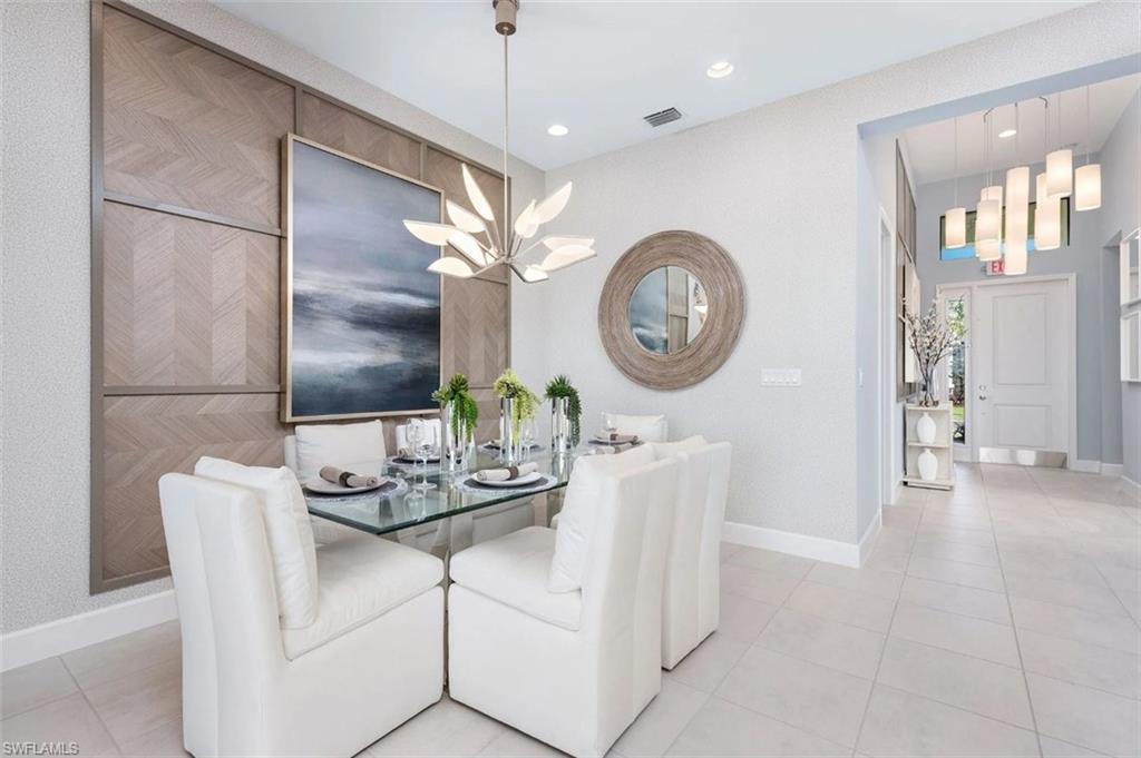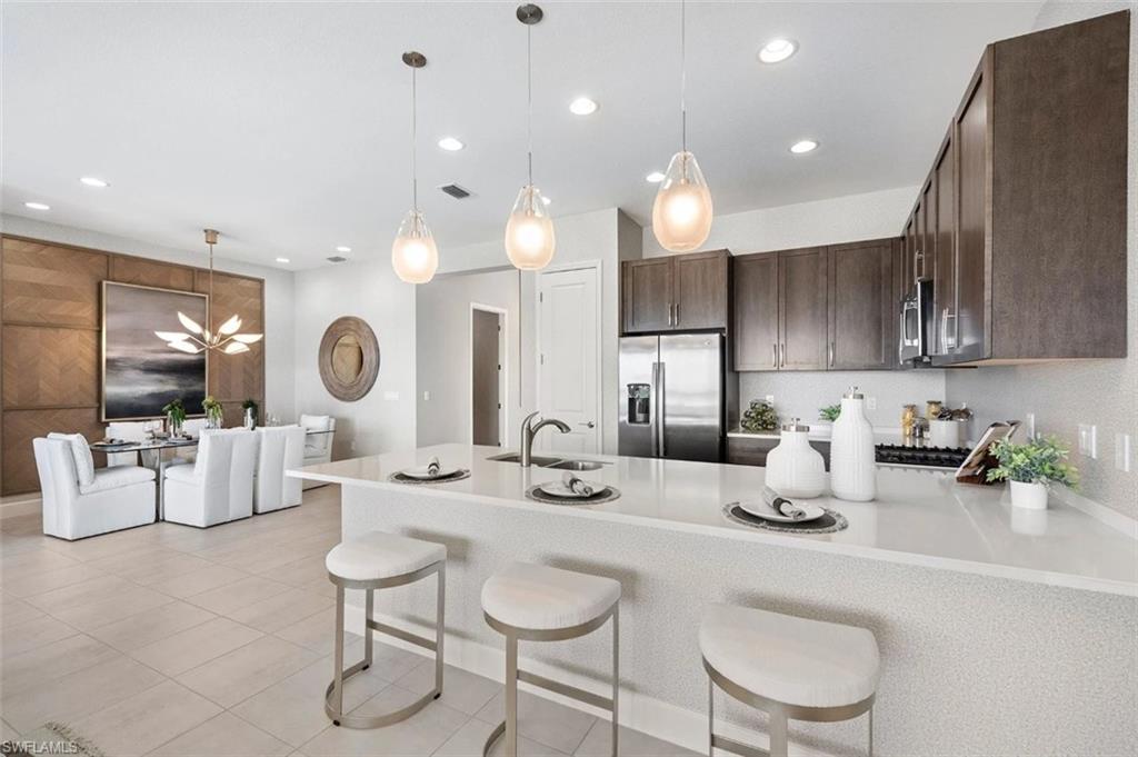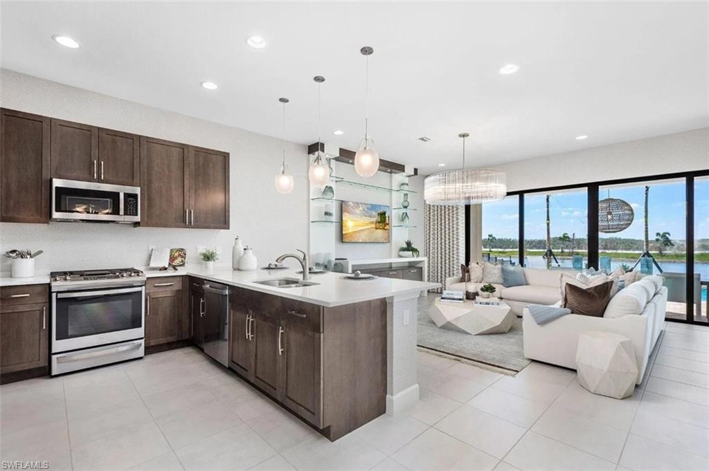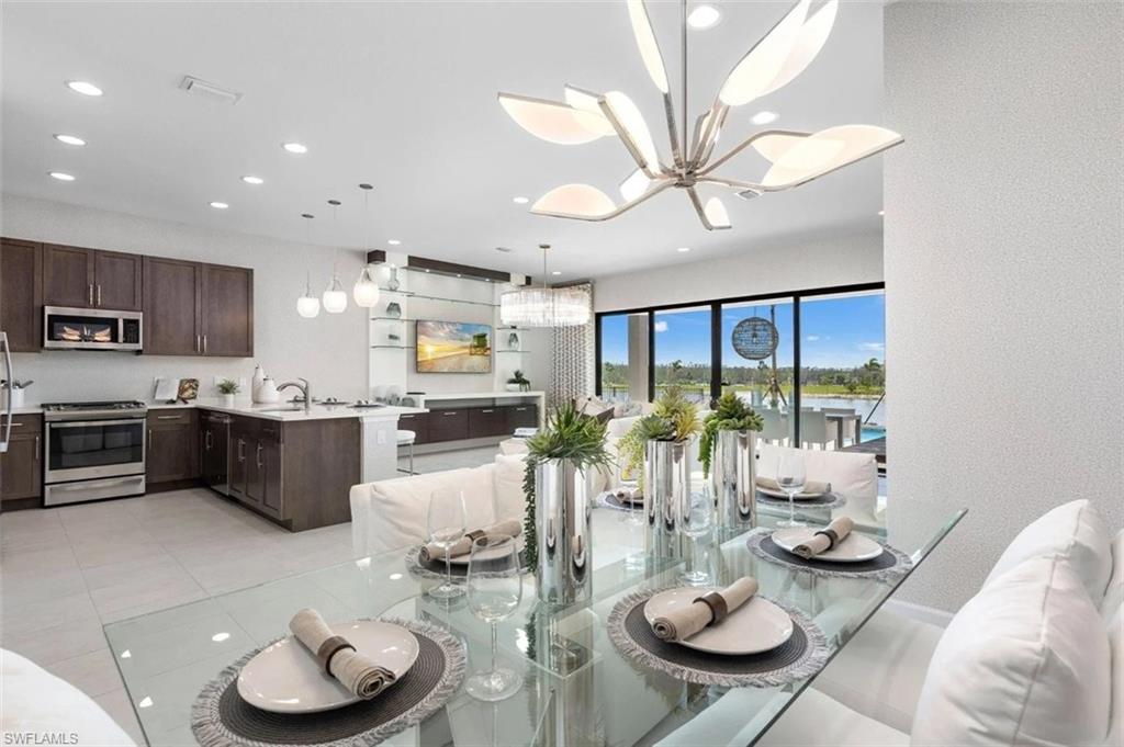 Available February/March 2026! Step into effortless Florida living in this beautifully furnished, designer-decorated pool home, perfectly positioned with peaceful lake views in Rivercreek, Estero. The coveted Acadia model nails the balance between style and comfort, offering two bedrooms, a sunlit den, two full baths, and a spacious two-car garage.Inside, dramatic 13-foot ceilings greet you at the foyer, setting the tone for an open floor plan finished with sleek ceramic tile throughout. The great room is bright, airy, and made for entertaining — thanks to oversized sliding glass doors and a custom entertainment center with floating glass shelves. Whether you're hosting friends in the gourmet kitchen or unwinding beside your private pool and spa (the fenced yard and southern exposure make it feel like your own resort), this home feels exceptional.Retreat to a primary suite designed for relaxation, with dual walk-in closets, a spa-like bath featuring a spacious shower and double sinks, and plenty of natural light. Secluded enough for quiet mornings, stylish enough to impress. The den, fully fitted with a built-in desk and media wall, is ready for your home office or next big project.Expect high-end finishes everywhere: curated millwork, statement lighting, designer window treatments, and handpicked decorative wall coverings. Every inch speaks to thoughtful design.Don’t miss your opportunity to call Rivercreek’s best home your own. The RiverCreek Community has so many things to offer for the entire family such as a 12,000 sq ft Clubhouse with an Indoor Sports Complex, a Resort Style Pool, Fitness Center/Exercise Studio, Event Room, Catering Kitchen, Card Salon, Sports Lounge, Fire Pit, Playground, Splash Park, Lighted Courts for Pickleball, Tennis and Bocce. That's over 4,000 Acres of Amenities! This is a rare chance to move right in to a professionally decorated, waterfront home where every detail feels just right.