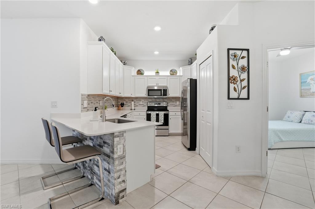 Discover this rare Orchid model in Orange Blossom Ranch featuring tile throughout, white cabinetry, and an open bright interior that feels clean and modern from the moment you walk in. This is the larger Orchid layout that offers two bedrooms plus a den, a spacious great room, and a peaceful rear sunset exposure overlooking the lake. Every main space has a beautiful water view, making the home feel warm and inviting all year. Orange Blossom Ranch is one of the fastest developing areas in Naples with extraordinary growth happening right outside the gates. Dozens of new businesses, restaurants, and retail are coming to the immediate corridor including a Publix, coffee shops, fitness options, and family focused services. The community will also have a private road connecting directly from the back entrance to this new commercial area. Another planned roadway will connect residents directly into the Big Corkscrew Regional Park, creating fast and easy access to the water park, sports fields, walking paths, and community events. Residents of Orange Blossom Ranch enjoy resort level amenities including pools, a clubhouse, fitness center, courts, playgrounds, and more. This home is move in ready with one of the most desirable villa floor plans and a premium lake view location. Perfect for full time living, seasonal use, or investment!