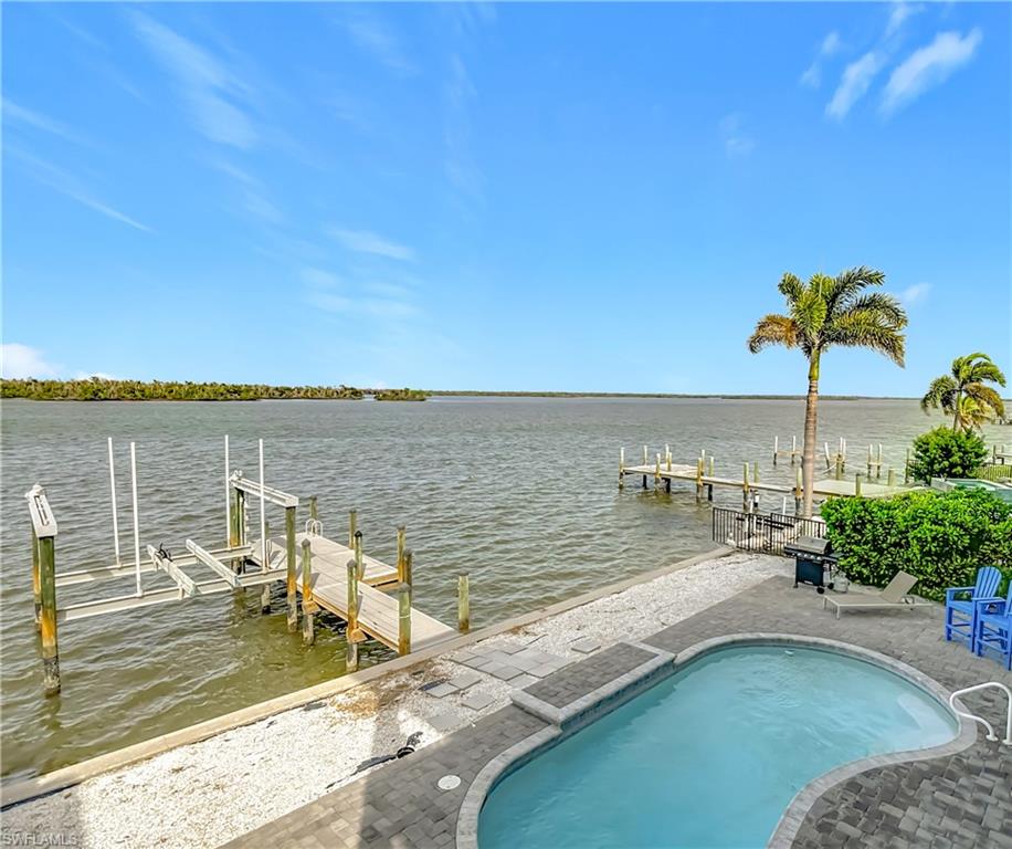 Captivating Bayfront Private Residence! Waterfront Elegance & Boaters Delight on the Direct Bay! Capture all the waterfront views from the Expansive Living, Dining, Kitchen, Guest Room Suites, Main Suite and the additional Living Room on the second floor. This Residence speaks for itself from the moment you enter your Foyer, a Kitchen that will sure please the chef, lunch/breakfast bar, Stainless Steel Appliances, Open Floor Plan concept living with exceptional direct Bay front water views, from the 20,000 lb. boat lift, Swimming Pool with expansive lanai, New pool heater & pump (2023), New storm resistant windows (2022), New paver pool decking (2023), 2 HVAC units (2021) with dehumidifier/UV lights.... the list goes on and on! Start your day with a beautiful Sunrise on your Balcony, Lanai or Private Dock while sipping morning coffee; watch the boats pass as they head out for the day's catch. This Residence features stunning views of the Sunrise to the east! At 383 Seminole Way you are just steps away from the White Sandy Beaches & Blue-Green Waters of the Gulf of Mexico; Stroll along the beach while the Dolphins Play along the water's edge; swim, soak in the sun or just relax poolside with your favorite book. Later in the day... walk to the renowned Santini Marina Plaza & multiple Resort Style shops... take a stroll on the beach, watching the Sunset Colors light the evening sky. Your Island Home at 383 Seminole Way... You have found your Perfect 'Peace' of Paradise.