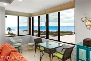 Enjoy beachfront living in this beautifully remodeled 2-bedroom, 2-bathroom condo on Fort Myers Beach. The entry to this condo is unique and versatile allowing for ample storage, a sitting area or even an office. This stunning open-concept home features a modern kitchen with trey ceilings, granite countertops and stainless steel appliances, perfect for entertaining. The split floor plan offers privacy and comfort, with a spacious guest room and a guest bath complete with a tub and shower combo. The master suite boasts tray ceilings, sliding doors for added privacy, and an ensuite bath with a walk-in shower. The living room has coffered ceiling design with added lighting along abundant natural light fills the space, showcasing breathtaking views of the beach and the Gulf of Mexico. Hurricane windows throughout provide added peace of mind. Don't miss the opportunity to own this beachfront gem with spectacular views and stylish updates! This unit also has a brand new air conditioner which was installed March 2024.