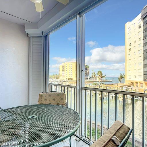 Popular Casa Marina. Enjoy your view from this large Lanai overlooking intersecting waterways and Estero Bay, watching many beautiful Sunrises. Watch the dolphins and manatees swim the canal right below your balcony! Also enjoy the views out to the open Bay and watch all the Boats cruise by. This 2 BR/2 BA is on the first floor, very spacious Living/Dining area with triple stacking sliders in the living area and the master bedroom opening to a huge screened lanai. Kitchen has Granite countertops, open with bar seating to the living area. Electric roll down shutters are on all windows and the Lanai area. This area is close to shopping and dining.