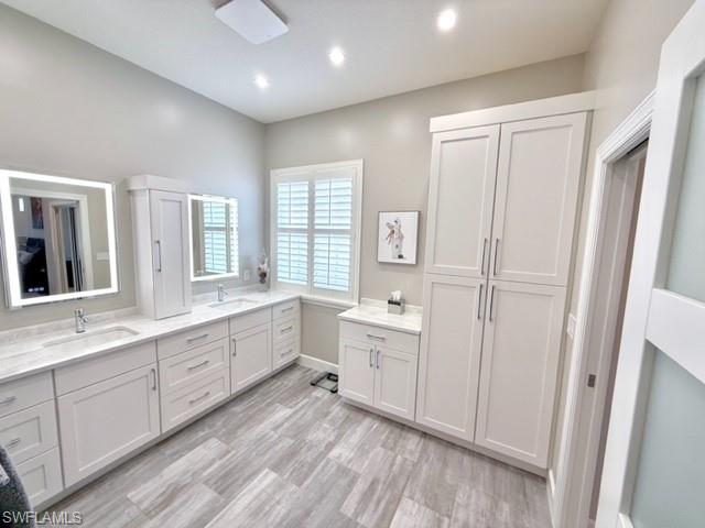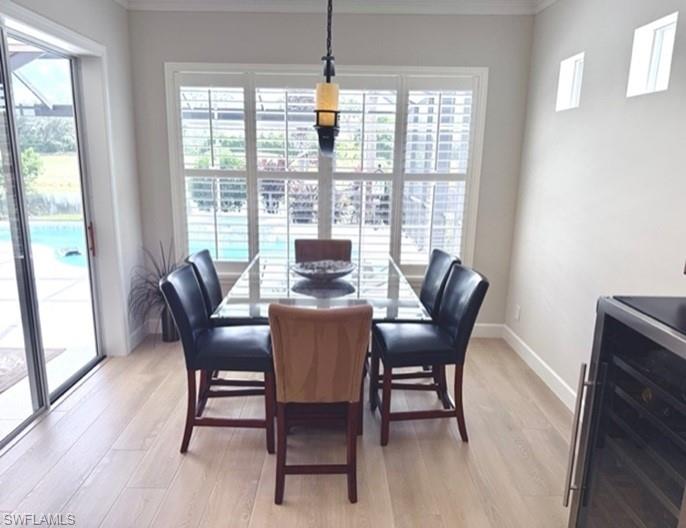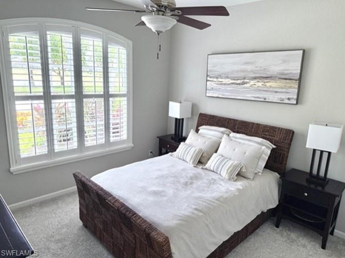 PALMIRA COUNTRY CLUB POOL HOME with Priceless view! Three bedrooms and two full baths. Remodeled kitchen open floor plan with modern quartz countertops, new backsplash, new GE Café appliances with induction oven. Exquisite master bath completely remodeled. 2024 installed Coretec LV plank wood grain throughout home, 5” base board, crown molding in living areas, plantation shutters throughout, custom master closet. Pool has solar heating and 2024 new heater and pool deck coated. Picture window lanai. Electric rollup hurricane shutters both front and back of home. Motorized garage storage system. Phenomenal view of pond and golf green with east facing lanai. Resort amenities of golf, tennis, pickleball, bocce. Beautiful landscaping. Close to 75, RSW and Naples. 10 miles from pristine Gulf beaches. Included are resort amenities at the Renaissance Center Club.