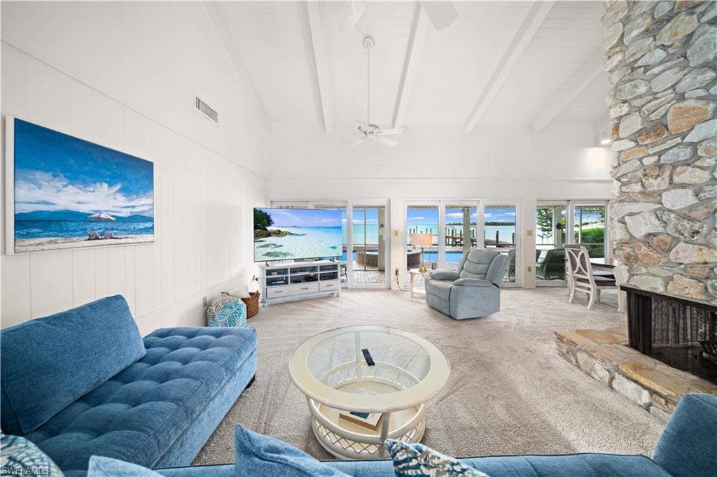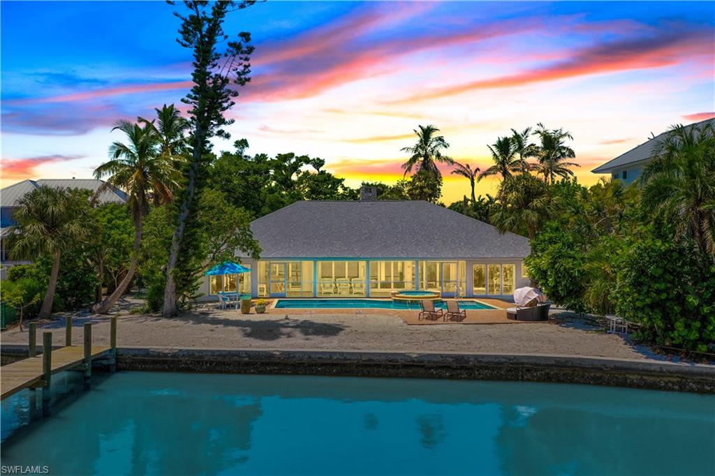 Rare opportunity for this charming waterfront property located in the heart of the village on Captiva Island. Located onRoosevelt Channel, this .48-acre lot boasts 100 feet of bay frontage, with a seawall and deep water dockage. Ideal location with direct gulf access as well as the Intercostal Waterway offering the perfect spot for boaters and nature lovers. Ideal Island location accommodating larger vessels and sailboats. Newer dock with ample space for two lifts. The spacious 3-bedroom, 3-bath home is designed with a blend of elegance and comfort. Inside, vaulted beamed ceilings and a full rock fireplace create an inviting atmosphere, while the open floor plan extends to the large, screened lanai. Step outside to enjoy the private pool/spa, dock, and serene water views. This rare combination of deep-water dockage, easy beach access, and prime location makes it a true nature lover's paradise. One of the few parcels on Captiva that offers deep water dockage.