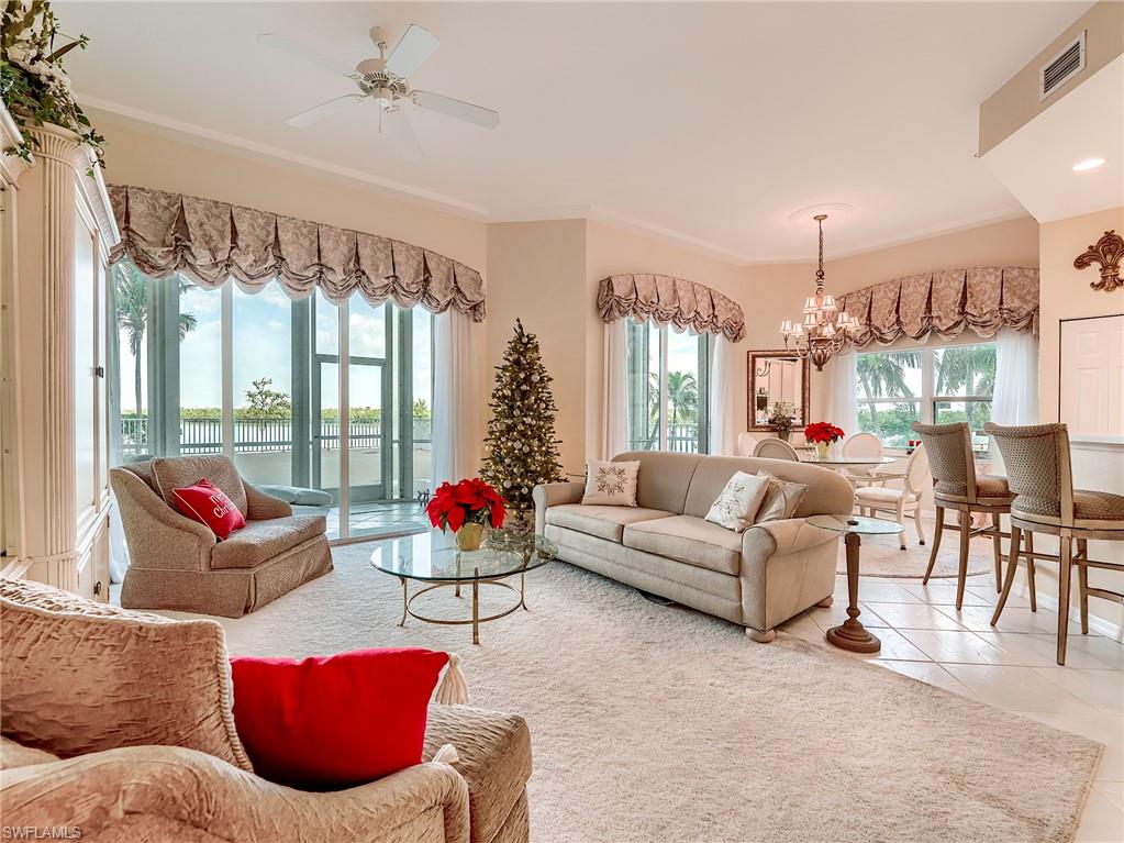 4141 Bay Beach Lane #426 A Unique Opportunity! Discover this rare second floor Turnkey, End Unit at Waterside at Bay Beach located at the desirable south end of Ft. Myers Beach with exquisite views of the Intracoastal waterway with passing boats and occasional dolphins and manatees. Why is the second floor at Waterside 4 so unique? This unique second floor end-unit not only has exceptional, close to nature, views of the Intracoastal waterway from every room in the unit but it has two oversized private walkout decks one approximately 40x40 ft. in addition to the large lanai. This integrates the indoor and outdoor space to allow for extended activities and entertainment by all ages. Patio tables , chairs and lounge chairs with cushions are included. As an end unit ,natural light streams through the additional side windows offering stunning views of the water and the fishing pier. All three bedrooms have 8ft sliding glass doors and provide access to the outdoor decks. The master bedroom has a larger sliding door with 3 panels of glass and a walk-in closet and ensuite bath with separate bath and shower. All 3 bedrooms have wall mounted TV’s. This unique second floor unit also features 11ft ceilings found only here and in the penthouses ,creating an exceptional sense of space. As a result it also allows for extended cabinetry for extra storage and extended height in the screened-in lanai which can be completely enclosed with the electric hurricane shutters. Yes there is more on the second floor. Located down the hall are two guest suites, well equipped gym, social room with adjoining kitchen, sauna and showers thereby providing unmatched convenience for hosting. Easily accessible down one floor are the outside amenities which include a waterfront pool, spa, BBQ’s, tennis courts and a fishing pier. Within the Bay Beach community is a Nature Preserve with walking trails, putting green, bocce and pickle ball courts. Private deeded beach access is available as a member of this community. Fort Myers is famous for its sugar sand beaches and most spectacular sunsets. Lovers Key State Park is also close by as is the Santini Plaza. Paradise is waiting .