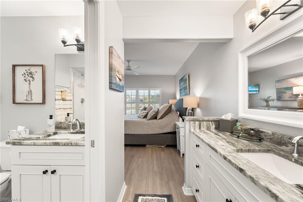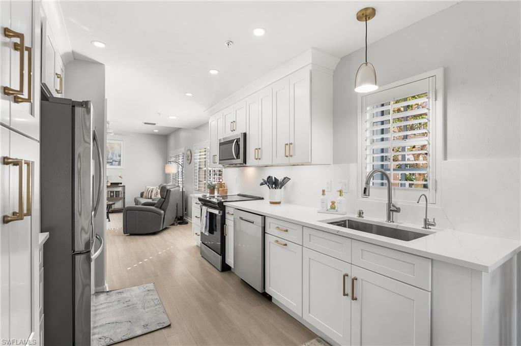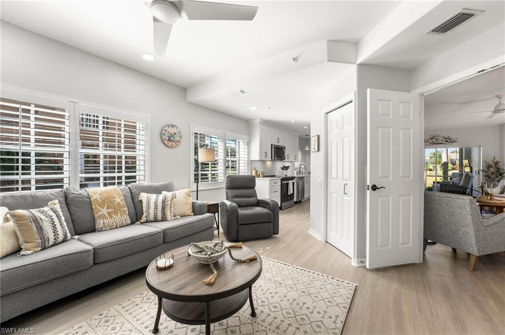 You’ve worked hard. Now it’s time to LIVE WELL! And this FIRST-FLOOR END-UNIT in WORTHINGTON COUNTRY CLUB delivers the lifestyle upgrade you’ve absolutely earned—peace when you want it, play when you choose it, and a beautifully updated, move-in-ready home where you won’t lift a finger. The greatroom design draws you toward wide GOLF AND LAKE VIEWS overlooking the 13th tee—perfectly positioned to enjoy the scenery without worrying about stray shots. Your SPACIOUS SCREENED LANAI becomes the place where mornings start slowly and intentionally, with quiet breezes, and a front-row seat to herons gliding across the water. Sunsets are spectacular in your sanctuary, and it's your reminder that the pace of life has finally shifted in your favor. Inside, every meaningful improvement has already been handled. The 2025 remodeled kitchen is a highlight, offering shaker wood cabinets with soft-close features, pull-outs, under-cabinet lighting, quartz counters, and new stainless appliances. Whether you’re hosting friends, preparing something simple, or grabbing a quick snack before hitting the course, this space makes everything easier. The primary suite features tranquil views, a large walk in closet, and a beautifully remodeled master bath. The guest suite also includes a large walk in closet with built in organizers and and bathroom upgrades. A den off the kitchen provides flexible space for work, reading, hobbies, or an extra lounge area. To make life effortless, the home includes updated flooring, plantation shutters, updated lighting, a screened front entry, NEW no-see-um lanai screens, electric hurricane shutters on the lanai, accordion hurricane shutters on the windows, HVAC (2018) with UV light (2024), a new smart thermostat, and a DETACHED 1-CAR GARAGE with attic storage. Fresh, bright, clean and truly MOVE-IN READY—everything is complete, so you can simply unpack and enjoy. Worthington makes this lifestyle even better. Beyond its championship golf course, you’ll enjoy a beautifully updated clubhouse with dining options, a well-equipped FITNESS CENTER, HEATED POOL, TENNIS, PICKLEBALL, GATED SECURITY, and one of the most ACTIVE SOCIAL CALENDARS in Bonita Springs. And here’s the bonus that makes life even simpler: the charming Sherburne section of Worthington has its own neighborhood pool plus its own PICKLEBALL and TENNIS COURT—now that’s convenient! It’s like having a mini-resort just steps from your lanai, giving you effortless access to fun, fitness, and friendly social time without ever getting in your car. So ask yourself: What if this is the moment life becomes lighter, brighter, and a whole lot more fun? Most people who’ve worked as hard as you eventually realize that ease is not a luxury—it’s a reward. And opportunities like this first-floor, end-unit beauty rarely wait. Take the first step toward the lifestyle you’ve earned. Come see how effortlessly good life feels at Worthington. Opportunity is CALLING—book your private showing TODAY.