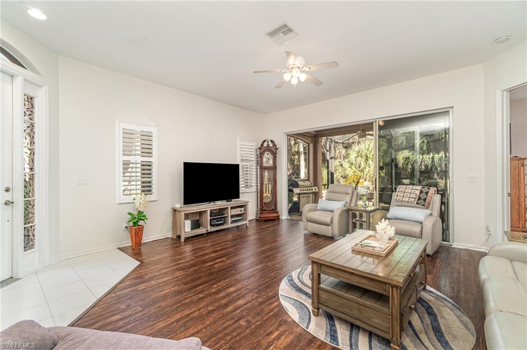 Experience exceptional value, lifestyle, and peace of mind in this beautifully updated two-bedroom plus den residence located in the prestigious, gated Hunters Ridge Golf and Country Club in Bonita Springs. This home is offered as a Certified Pre-Owned Home, providing unmatched security and transparency for today's buyer. Your purchase includes a full professional pre-inspection, a comprehensive one-year home warranty, generous buyer incentives, and the exclusive Love It or Leave It Guarantee-which means that if you do not love this home after 12 months, we will sell it for free or buy it back. Combined with up to $5,000 in closing cost credits and interest rates as low as 4.00% for qualified buyers, this home delivers exceptional confidence, affordability, and value. Inside, the home features a bright and spacious open layout ideal for everyday living and entertaining. The kitchen offers abundant countertop seating, an eat-in breakfast area, and seamless flow into the expansive family room. Sliding glass doors extend the living space outdoors to an oversized, extended lanai overlooking a tranquil preserve-perfect for relaxing, dining, or hosting gatherings year-round. A versatile flex space adjacent to the kitchen serves perfectly as a home office, den, or formal dining room. The split bedroom layout enhances privacy, with the primary suite positioned separately from guest accommodations. The primary bedroom is filled with natural light, offers direct access to the lanai, and features plantation shutters. The en-suite bath includes dual vanities, a soaking tub, and a separate walk-in shower. The guest bedroom is equally comfortable, offering ample space and sunshine. Recent updates include fresh interior paint, a new air-conditioning system, a new water heater, and brand-new bedroom carpet-ensuring the next owner enjoys a move-in-ready home with modern efficiency and comfort. The current owner holds a social membership, and golf memberships are optional, giving buyers flexibility to tailor their lifestyle. Community amenities include championship golf, lighted tennis and pickleball courts, bocce, croquet, a resort-style swimming pool with lap lanes, a poolside bar and restaurant, a welcoming clubhouse, and a state-of-the-art fitness center with a full-time instructor. Conveniently located just 20 minutes from RSW Airport, the beaches, Naples, the Mercato, and the soon-to-open Bonita Midtown Plaza-a vibrant new dining, retail, entertainment, and residential destination only a short bike ride away. This Certified Pre-Owned Home offers quality, transparency, protection, and lifestyle advantages rarely found in today's market. Schedule your private showing today and experience the difference for yourself.