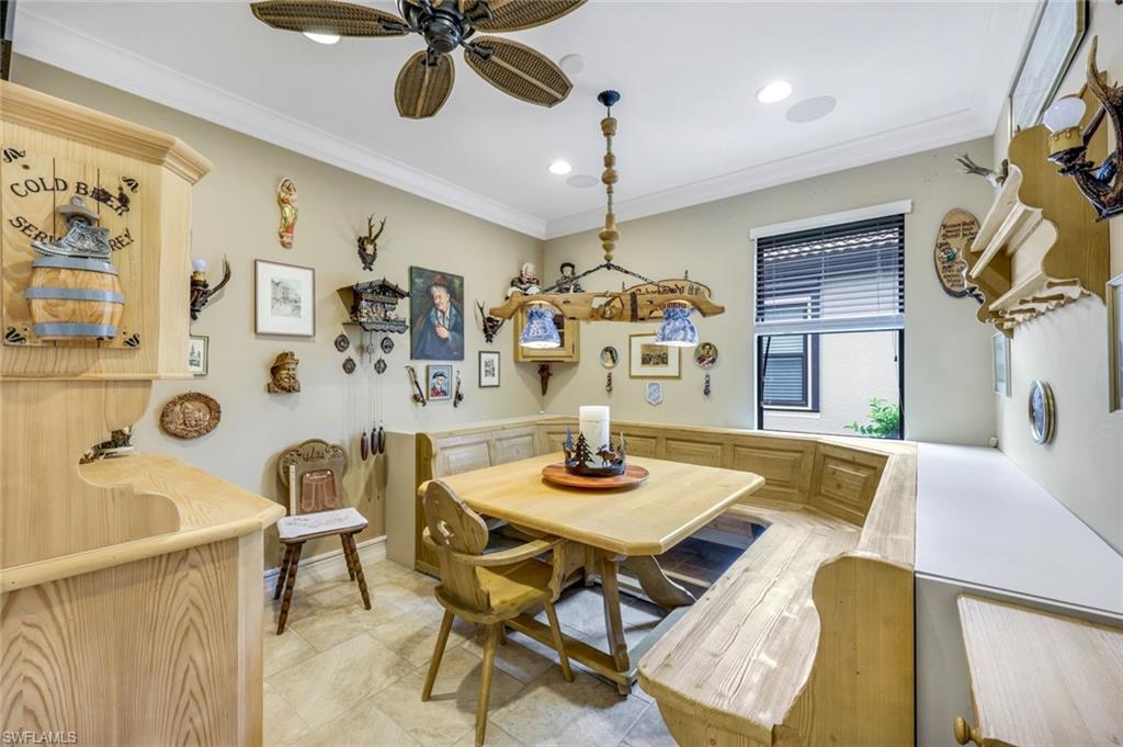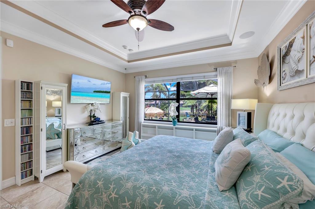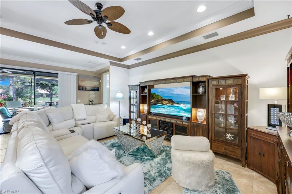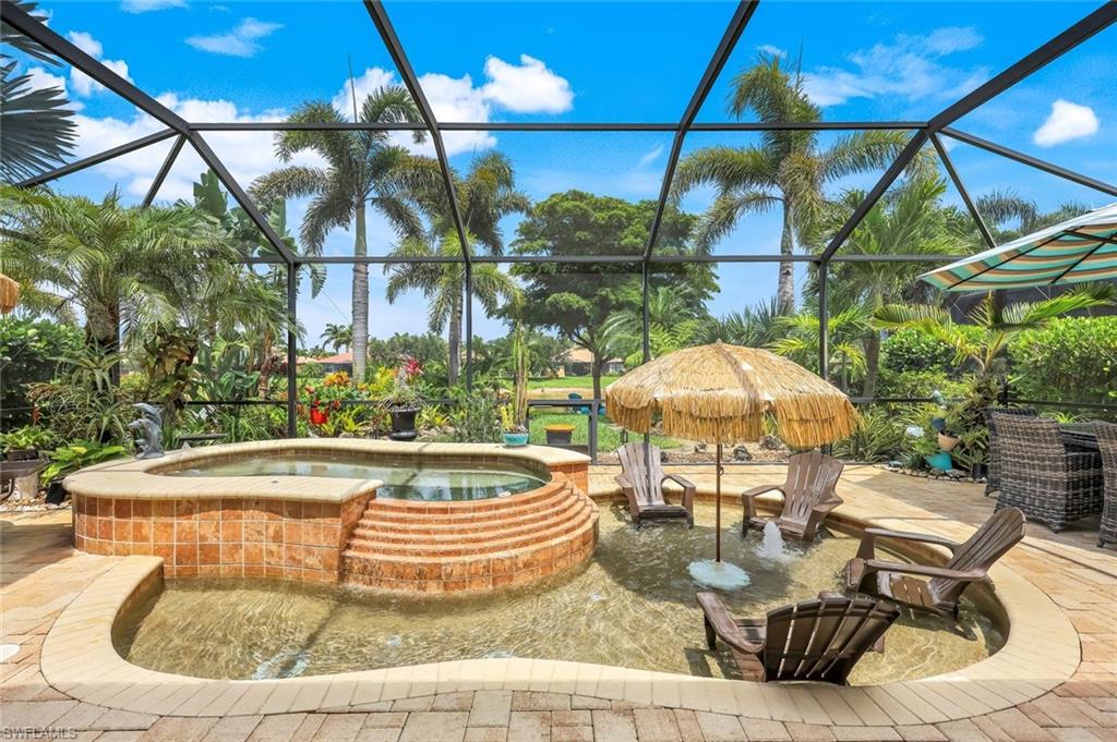 Lakefront Living in Paloma. Discover this stunning Edison model in Paloma, a gated community nestled west of I-75 in Bonita Springs. You're just minutes from Coconut Point, Mercato, Bonita Beach, and RSW Airport—convenience meets tranquility. Set on a premium lakefront lot, this 3-bedroom plus den, 2-bath residence features a custom heated wading pool with an oversized spa, mood lighting, an outdoor kitchen, and a screened lanai—all designed for enjoying those legendary Florida sunsets. Inside, an open floor plan showcases tile flooring, crown molding, tray ceilings, and built-in surround sound. The kitchen impresses with 42-inch walnut cabinetry, granite counters, a generous island, and slate-finish stainless appliances. The owner's suite opens to lake views and includes dual vanities, a walk-in shower, and a soaking tub. Thoughtful extras include roll-down hurricane shutters, a retractable screen front door, an air-conditioned garage, and a finished laundry room with utility sink and storage. HOA fees cover lawn care, landscaping, and irrigation, plus access to resort-style amenities: pool, fitness center, tennis and bocce courts, and a welcoming clubhouse. There's no CDD, and a FEMA-issued LOMR letter means flood insurance isn't required. Paloma's active social calendar—water aerobics, yoga, book clubs, poker nights, happy hours—makes this ideal for year-round or seasonal living.