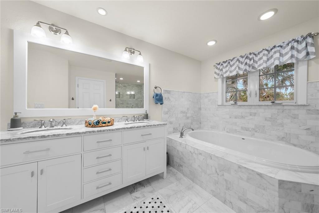 Welcome to your own slice of Sanibel Island paradise—where luxury meets the laid-back rhythm of “island time.” Step through the front door and into a sun-filled haven designed for both effortless living and unforgettable entertaining. At the heart of the home lies a chef’s dream kitchen, impeccably outfitted with top-of-the-line Thermador appliances, including double wall ovens, a built-in refrigerator, microwave, and dishwasher. The expansive center island invites everything from morning coffee to evening cocktails, all set beneath soaring vaulted ceilings that make the open floor plan feel bright, breezy, and endlessly inviting. The great room flows seamlessly onto the back deck, where you’re greeted by a stunning, screen-enclosed pool area. Surrounded by no-see-um screens, this private retreat is perfect for lazy afternoons, twilight swims, and entertaining under the stars. Your primary suite is a sanctuary of its own. French doors open to the pool deck, capturing the essence of indoor-outdoor living, while the spa-quality ensuite—featuring a marble double vanity, soaking tub, and custom glass-enclosed shower—rivals the finest resort. This home has been meticulously updated for peace of mind and modern comfort: Pool & paver pool deck + driveway (2017), HVAC with 10-year warranty (2020), Standing seam metal roof (2022), Plumbing (2023), Pool cage re-screen (2024), Spray-foam insulation in garage (2025), Pella impact windows and doors throughout Just a short stroll brings you to the beach, where world-class shelling and breathtaking sunsets await. Hop on your bike and you’re minutes from Captiva Village’s charming shops and restaurants. Nestled on Sanibel’s coveted west end, within the warm and welcoming Santiva community, this home offers a lifestyle defined by serenity, nature, and the unmistakable magic of island living. Your island-perfect retreat awaits.