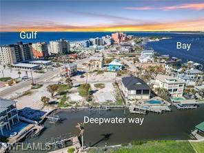 RARE FIND! LARGE lot on the sought-after North End of Fort Myers Beach on a semi-circular street. Nestled amonst the finest homes in the area. 80' of waterfront on the widest, deepest canal on the north end, great for larger boats. Views of Estero Bay and intersecting canal. Little to no traffic at this ideal location. Closest deep-water canal to the Federal Channel and the Gulf avoids endless idling in no wake zones to open waters. Approximately 80'x130' per survey. Permitted tie off pilings in place for a large boat. Calm canal with manatees and dolphins frequently visiting. Lot size means fewer, if any, permitting, setback, water retention or grandfathering issues to build. FEMA flood zone elevation lowered after Hurricane Ian. Fill added for prior house that was destroyed by wind; no water over the elevated floor. Captivating Bay views by day and magical evening sunsets over the Gulf. The beach access is only a quick walk away. Sunrises, full moons, fireworks and space craft launches can all be seen from here! Time Square and Bowditch Point Park are within walking distance. The well built seawall contains no steel to rust or corrode. Location in a weekly rental zone presents a year-round income opportunity. This property has been in the same family for nearly 40 years!