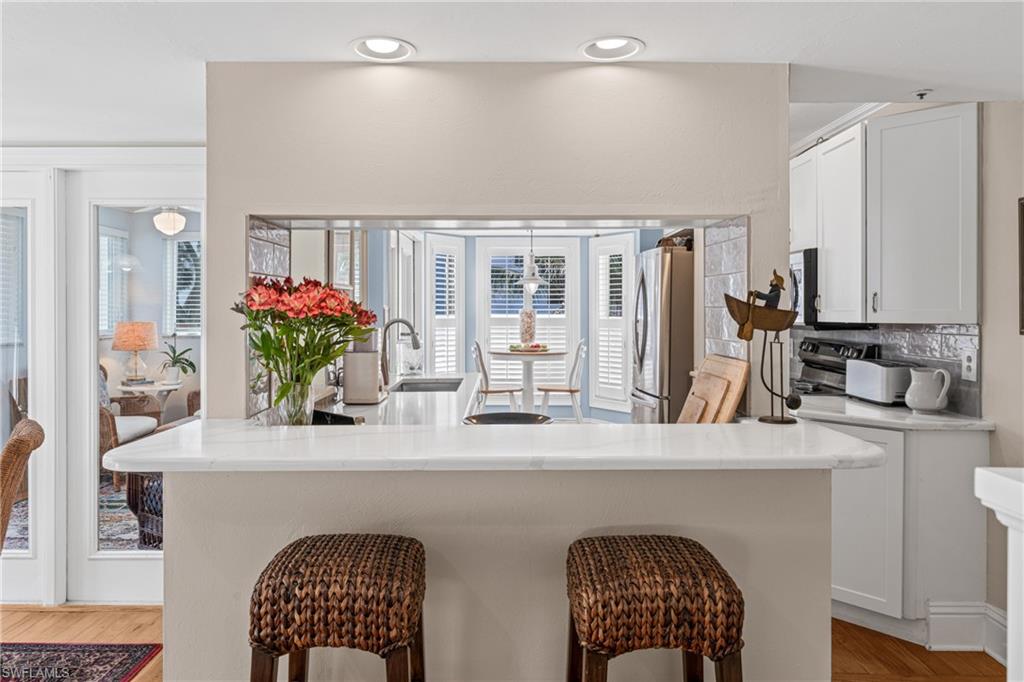 Coastal elegance, bargain BAY VIEWS & ELEVATED LIVING with private POOL & SPA….all located less than 800 feet to public BEACH ACCESS directly across the street…..Start living in paradise today at 188 Bayview Ave on Fort Myers Beach on one of the quietest RESIDENTIAL streets on the island! Talk about a convenient location? Publix Super Market, Junkanoo Below Deck & Fresh Catch are right around the corner plus if you are a boater or want to take a charter out for the day Snook Bight Marina has everything you need! When you arrive to 188 Bayview Ave the first thing you notice is the rare circle driveway & beautiful lushly landscaped grounds leading into your personal Old Florida style oasis filled with natural light & plenty of spaces to enjoy BAY VIEWS! As you enter this extremely well cared for home your eyes are immediately drawn to the real HARD WOOD OAK floors, soaring ceilings & huge great room with fireplace (new insert, flue & chimney 2023). Beautiful kitchen with quartz countertops, newer stainless steel appliances, plenty of storage & cabinet space plus breakfast bar & breakfast nook with VIEWS! Two very good sized bedrooms downstairs with oversized closet space & gorgeous ensuite baths. Upstairs is the massive master suite with a private patio with the best views in the house! Additionally there are multiple patio spaces to enjoy including the extra large covered front porch. Awesome pool & spa (refinished 2023) with new heater (2023) & screen enclosure as well as covered patio space with outdoor kitchen, cabinet space, sink & refrigeration make this an incredible entertaining space. Enclosed outdoor shower. The backyard landscaping creates a lush backdrop & creates great privacy to enjoy days at the pool! Additional highlights include: well for irrigation, 2 car garage with workshop & plenty of storage while still keeping room to park 2 cars, new fire suppression system (2024) & NEW METAL ROOF (2022). This is your chance to live in paradise on Fort Myers Beach on one of the BEST most convenient RESIDENTIAL streets on the island! Schedule your showing today!