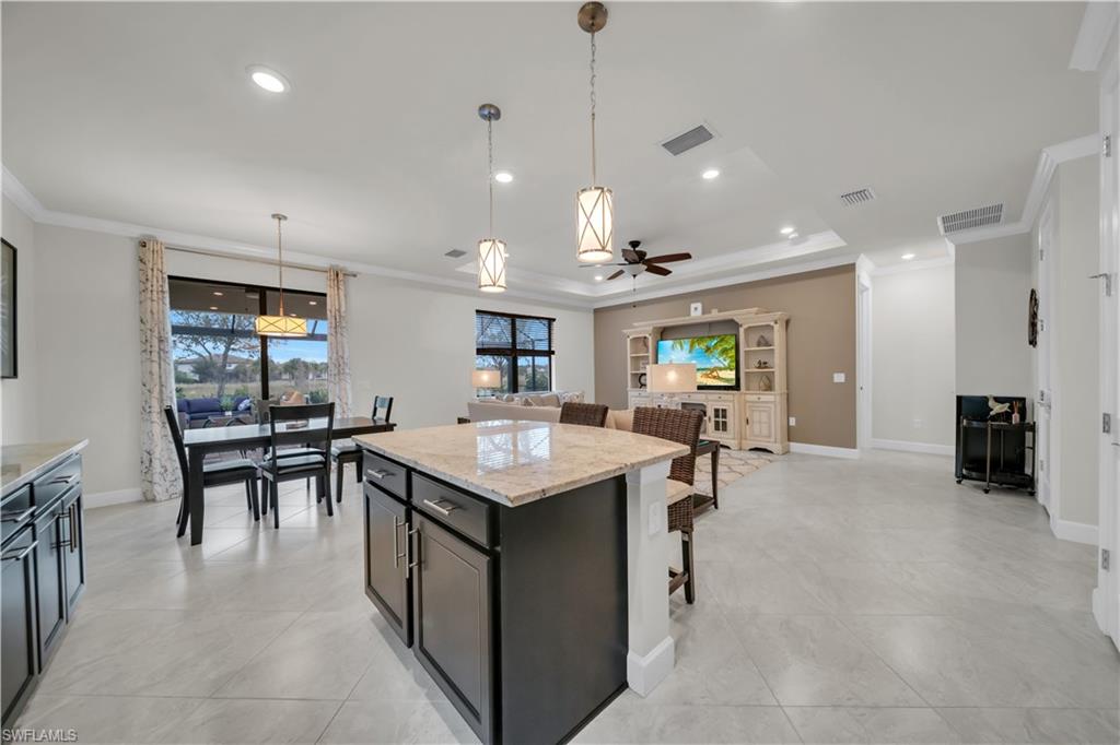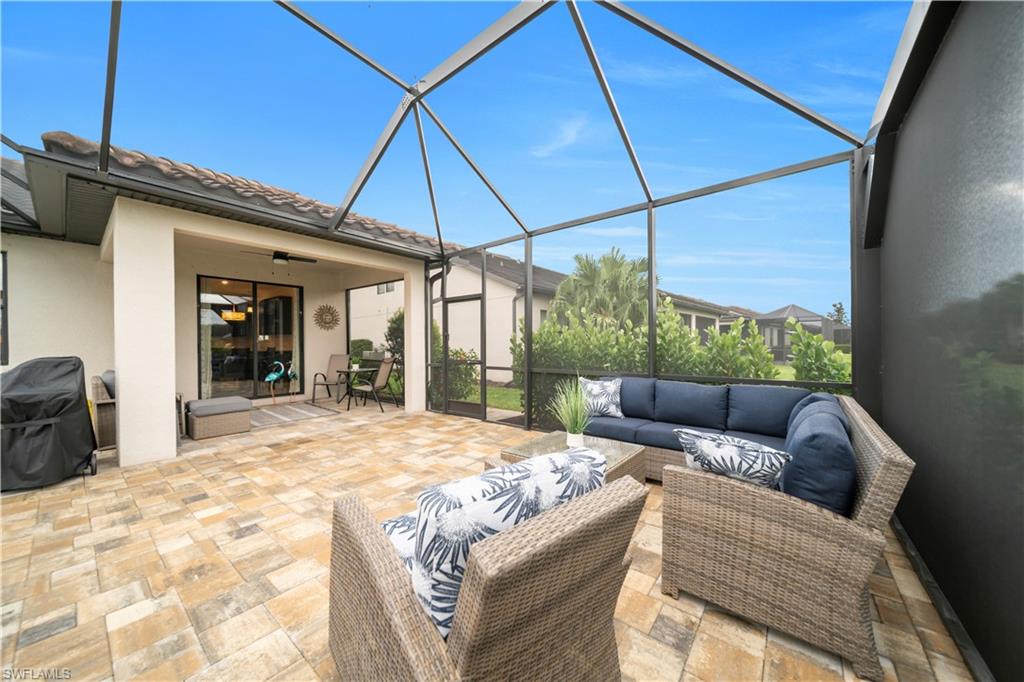 Ever wonder what it feels like to step into a home that is already perfected--where every upgrade is done, the SALTWATER POOL is sparkling new, and the community feels like a permanent resort getaway? This stunning Marina model in the sought after The Place at Corkscrew in Estero delivers exactly that: a 3-bedroom 2-full bath beauty offered FULLY FURNISHED with relaxed coastal style breezy blues, plush textiles, and high- end pieces ready for you to move right in and start enjoying life! The open concept layout flows effortlessly with a bright great room ideal for gatherings, a gourmet kitchen featuring stainless appliances, granite countertops, a large island and pantry, custom lighting, plus a comfortable dining area. The master suite is your private escape with a spacious walk-in closet and luxurious bath showcasing a big walk-in shower. Two guest bedrooms provide flexibility for family or a home office—both with walk-in closets. Step outside to pure paradise a brand-new CUSTOM SALT WATER POOL with a relaxing sun shelf, surrounded by an HUGE extended “no see-um” screened LANAI overlooking the serene preserve--perfect for morning coffee or evening barbecues. The climate-controlled garage keeps your cars cool year-round and offers extra comfort for hobbies or storage. When you live in The Place, every day feels like a vacation and activities are offered all year round. The community has a dedicated paid activities director who organizes everything from holiday parties and fitness classes to social mixers and themed gatherings. Dive into the massive lagoon-style pool with its thrilling 100 ft. waterslide and splash zone. The pool area also has a beach volleyball court and a fire pit. Grab a bite at the on-site restaurant, bourbon bar, or marketplace café. Stay fit in the two-story state-of-the-art fitness center with movement studio and childcare. Perfect your game on the tennis, pickleball, bocce, or basketball courts. Your pup will enjoy its very own dog park! Conveniently located off Corkscrew Road with easy access to shopping, dining, beaches, and top schools. This home combines thoughtful upgrades you will not find in base models. Built by Pulte Homes, one of the nation’s most trusted builders, this home is truly better than new. Ready to make it yours? Let’s schedule a tour!