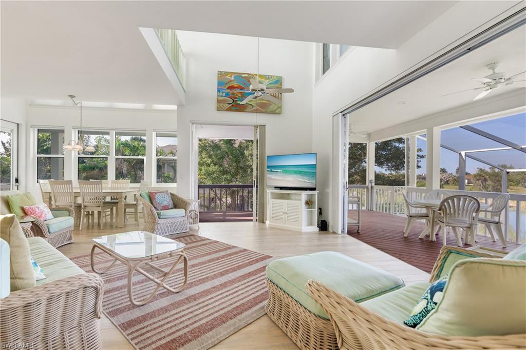 The one that checks all the boxes! Welcome to 1508 Middle Gulf Dr, an elevated 3 Bedroom + Den & 4 (full) bath coastal-chic island home perfectly set along the wildlife-rich Sanibel River and just steps from the shell-laden shores of the Gulf—Sanibel living at its best in a prime central location! Step inside to soaring ceilings and large windows that fill the open concept living area with natural light and sweeping views. The updated kitchen seamlessly flows into the living and dining spaces providing form and function, and recessed sliders open to a large wraparound lanai, blending indoors and out and creating a postcard worthy setting for sunsets and entertaining. Fresh finishes and bright interiors maintain the home’s classic Sanibel charm while offering a clean, modern feel. The flexible layout and desirable split floorplan adapts to your lifestyle—set up a remote workspace with river and golf course views, welcome friends and family to paradise comfortably, or just settle into the relaxed rhythm of island life with plenty of space to stretch your legs and recharge your batteries after a successful sunrise shelling expedition. A new roof, impact windows, and Hardie board siding bring added peace of mind, while the enclosed lower level provides space for storage, hobbies, or expanded outdoor living. Step outside and enjoy the huge heated pool with a two-story screen enclosure, set within a professionally landscaped yard designed for privacy and year-round enjoyment. With private deeded beach access and vehicle parking, scenic water views, close proximity to the islands best shopping and dining, resort amenities across the street, easy access to the Sanibel Causeway, and the island’s famed shared-use path right out front, this home truly delivers the full package—an inviting beach retreat, a strong rental contender, or a comfortable full-time residence.