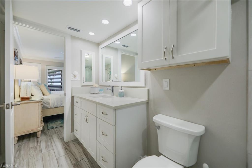 Welcome to 1403 Beach Cottage! A coastal inspired and completely renovated, turnkey 2 bedroom / 2 bath condominium with breathtaking beach views and stunning sunsets. Embrace the extraordinary at Beach Cottages located inside the reimaged South Seas Resort. The association has recently completed a transformation of the common areas including resurfacing of the pool and new patio furniture, expansion of the pool deck and addition of lush tropical landscaping, new roofs, installation of exterior Hardie siding, replacement of all staircases and railings, updating the tennis court and adding pickle ball, and all new lanais. You'll love the improvements to the interior including the 2 new bathrooms, smartly designed custom kitchen with quartz countertops and GE Profile appliances, functional laundry room with an owner's closet, new hot water heater, current plumbing system, wind resistant impact windows and bi-fold sliding glass doors, cozy plantation shutters, LED recessed lighting, outside shower and an underneath the building storage shed complete with shelving, a full sized refrigerator w/ icemaker, beach chairs, umbrella, rafts and toys. The condo has gorgeous beach and sunset views from the screened lanai which allow for use to sit and take in the beautiful views of the Gulf as well as a ground level private paver patio which has an outdoor shower and foot wash station. The condo is a short walk to the Village of Captiva with themed restaurants and cute shops. Excellent rental income history. Unlimited owner usage in South Seas rental management program. Life is Better at the Beach! Please call for your private showing.