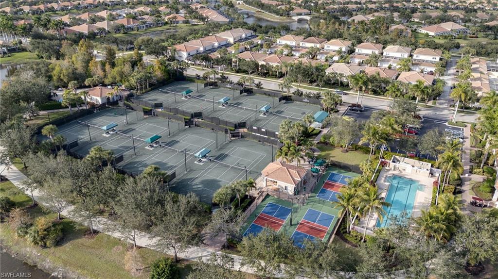 Welcome to Village Walk of Bonita Springs, where comfort meets resort-style living! This beautifully maintained attached villa offers 2 bedrooms and 2 full bathrooms with a thoughtfully designed, open and airy floor plan. Step inside to discover spacious living areas, with two distinct living and gathering spaces plus a spacious dining area. The home flows seamlessly to the outdoor living space, where you can relax and unwind while enjoying peaceful lake views and your private pool—perfect for entertaining or quiet evenings at home. Additional highlights include a 2-car garage, accordion hurricane shutters for added peace of mind, and low-maintenance living in a vibrant community. Village Walk is known for its golf-cart-friendly paths that wind throughout the neighborhood, making it easy to enjoy scenic strolls or quick rides to the many amenities. Residents enjoy a true lifestyle community with walking and biking paths, lakes, bridges, and an inviting social atmosphere, all just minutes from shopping, dining, beaches, and everything Southwest Florida has to offer. This villa is an ideal full-time residence, seasonal retreat, or investment opportunity—don’t miss your chance to own a slice of Florida paradise!