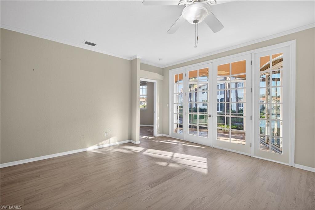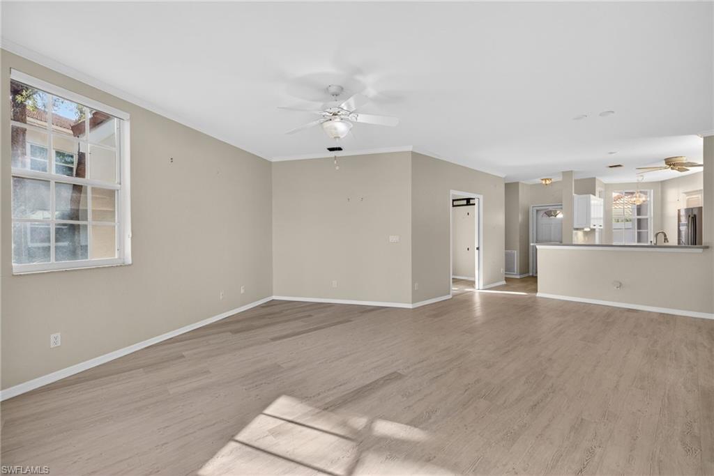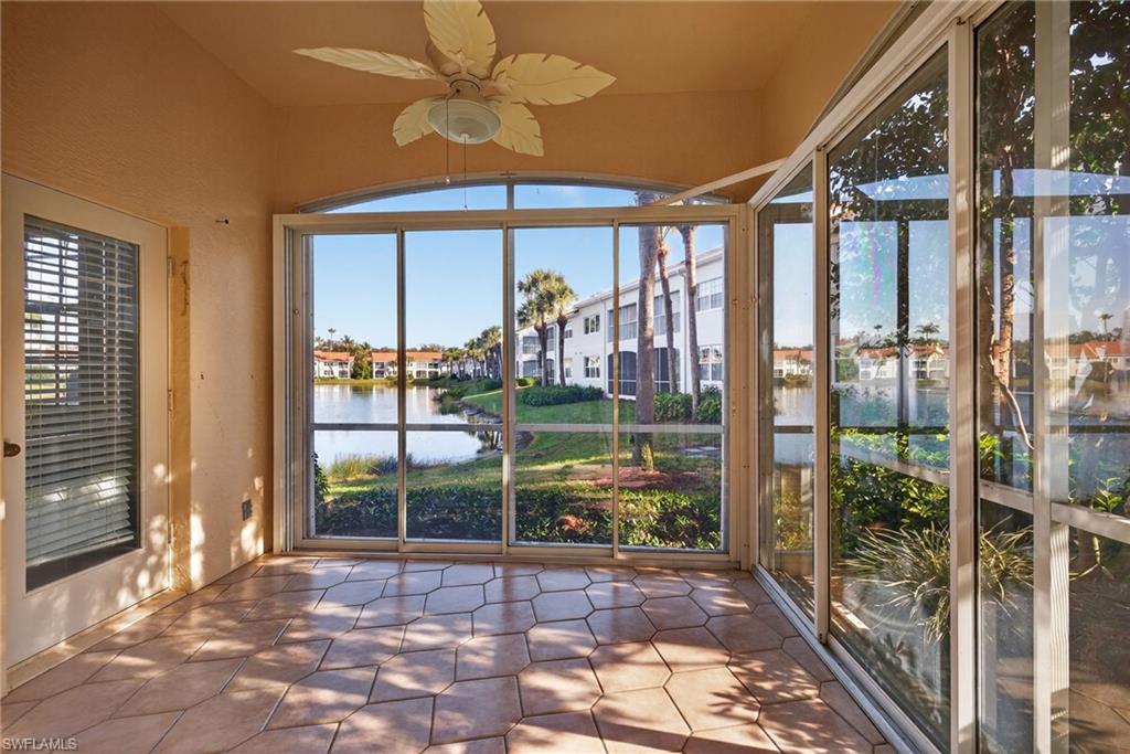 Rarely available lower-floor end unit with peaceful lake views and an open, airy feel throughout. This particular home was originally one of the models, so the layout is very desirable. The lanai has been thoughtfully converted into usable indoor space, with sliders that fully open along with the front screened entry, to create incredible natural airflow and an effortless indoor-outdoor connection. This open floor plan features an inviting kitchen, vinyl floors, crown molding, and a den. The kitchen has granite countertops and plenty of cabinet space. The primary bedroom has a spacious walk in closet and a beautiful view of the lake. The primary bathroom has dual sinks, walk in shower, and a custom vanity. This Pelican Bay home is located within the community of Avalon which is just a short distance to the fitness center, tennis courts, & brand new pickleball courts. The residents enjoy spectacular amenities including two private beach clubs with indoor & outdoor dining, attendant services, loungers, beach umbrellas, kayaks, paddleboards, and more. There is a community area within Avalon that includes two pools, a spa, and an outdoor kitchen for grilling with your new friends. All of this, set right in the heart of Naples—where comfort, light, and location come together beautifully.