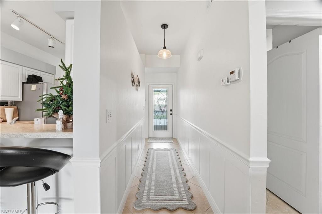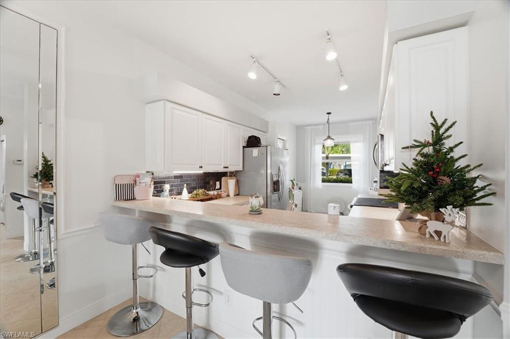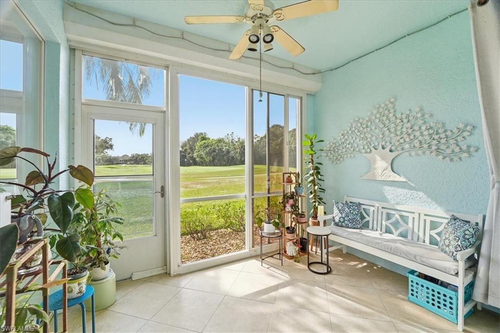 Prepare to Be Impressed! This updated, model-like Estero condo radiates pride of ownership at every turn. Offering 2 spacious bedrooms and 2 beautifully updated bathrooms, this truly exceptional residence is move-in ready and designed to impress. Start your mornings or unwind in the evenings on the fully enclosed lanai, where serene golf course views, lush green space, and a tranquil pond with a charming fountain create the perfect backdrop. The stunning eat-in kitchen has been completely updated with new appliances, custom shaker cabinetry, sleek countertops, contemporary lighting, and a timeless backsplash—ideal for both everyday living and entertaining. Additional upgrades include designer mirrors, updated plumbing fixtures, all-new windows and doors with stylish window coverings, designer neutral paint, ceiling fans, and an in-unit washer and dryer with storage cabinetry. For added peace of mind, the lanai is equipped with electric hurricane shutters. Enjoy a world-class amenity lifestyle featuring golf, bocce ball, tennis courts, a state-of-the-art fitness center, multiple pools (two within walking distance), scenic walking and biking paths, and a vibrant clubhouse—just to name a few. Perfectly located near pristine beaches, nature preserves, outdoor recreation, top-rated restaurants, shopping, theater, festivals, and entertainment, this one-of-a-kind condo truly has it all. ? This is a rare opportunity—schedule your private tour today before it’s gone!