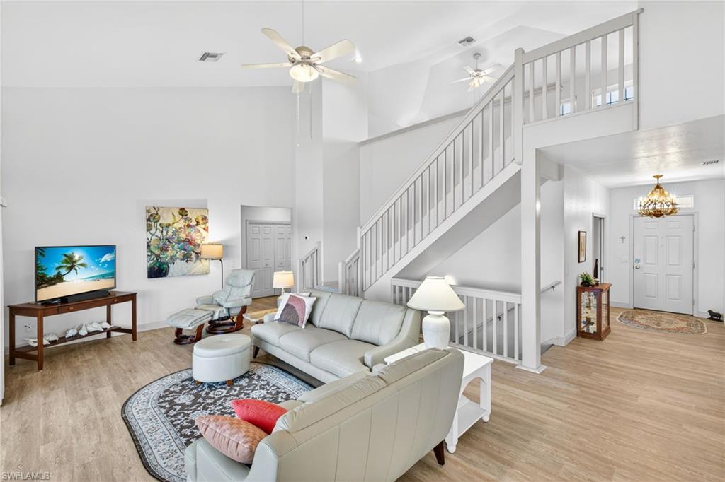 This spacious and beautifully designed elevated lakefront home offers over 3,072 square feet under air, providing comfort and versatility for a retired couple or growing family. The layout features three bedrooms, three full baths, and a loft, along with a formal dining room that can serve as a den or fourth bedroom, making the home adaptable to a variety of needs. The residence sits on an eco-friendly, oversized park-like lot across from protected conservation land. Enjoy breathtaking sunsets over the 17-acre lake from the screen-in porch and lanai, or relax by the large swimming pool and spa, complete with solar heater and waterfall. The home boasts cathedral ceilings, an eat-in kitchen with granite countertops, and a bright open feel throughout. The finished first floor, featuring impact patio doors and a concrete block foundation, is ideal for an art studio, hobbies, or even an entertainment space. Practical upgrades include a new metal roof, new air conditioning units, and extra clearance impact garage doors for the 3.5 car finished garage. The location is equally impressive with HOA tennis and pickleball courts and a short walk to the beach access, making this an exceptional property in a peaceful and highly desirable neighborhood. Square footage is believed to be correct but Buyer to verify.