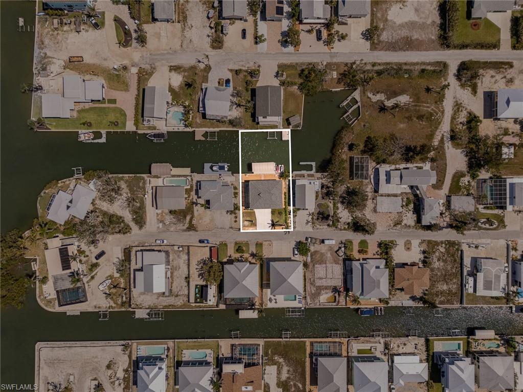Located on a canal in Fort Myers Beach, this elevated two-bedroom, two-bath residence offers approximately 1,651 square feet of thoughtfully arranged living space and is partially furnished for convenience. The interior layout features a welcoming entry that separates the private bedroom areas from the main living spaces. The kitchen includes white cabinetry, stainless steel appliances, a gas cooktop with pot filler, ventilation hood, and built-in oven and microwave, complemented by a center island, breakfast bar, and light-toned flooring. Open living and dining areas provide a comfortable setting with recessed lighting, ceiling fans, and a built-in audio system, along with a wet bar featuring a refrigerator, dual beverage coolers, and display shelving. The primary bedroom includes a walk-through closet and ensuite bath, while the guest bedroom is situated near a full second bathroom with a walk-in shower and updated vanity. Additional features include a laundry area with cabinetry and stacked washer and dryer. Outdoor living includes a screened lanai with canal views, a lower-level screened patio surrounding a fiberglass pool, and a composite dock with a covered boat lift and floating platforms for personal watercraft. The ground level offers covered parking for multiple vehicles and a large enclosed storage area, providing a well-rounded canal-front property with direct water access.