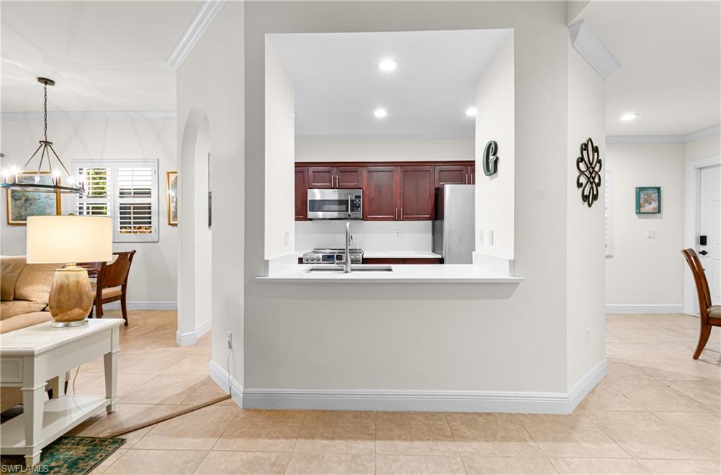 Welcome home to this beautifully maintained first-floor coach home, where comfort, style, and effortless Florida living come together. From the moment you step inside, you’ll be welcomed by an inviting open-concept layout and thoughtful design details throughout. Offered completely turnkey, this residence is ideal as a full-time home or a carefree vacation retreat. The home features three spacious bedrooms, two full bathrooms, a screened lanai, and an attached one-car garage. The kitchen has recently been remodeled and is a true showpiece, boasting abundant cabinetry, a pantry, stainless steel appliances, and elegant quartz countertops. It seamlessly flows into the dining and family rooms creating a warm, welcoming space perfect for everyday living or entertaining guests. The home is being sold Turnkey with quality pieces from Havertys, Baer’s, Matter Brothers, Ashley, and Arhaus, allowing you to move right in and enjoy both comfort and style from day one. The primary suite serves as a peaceful retreat, complete with luxury vinyl flooring and a well-appointed en-suite bath featuring dual sinks, a walk-in shower, and generous closet space. A split-bedroom floor plan enhances privacy, with the guest bedrooms and full bath thoughtfully situated on the opposite side of the home. Additional upgrades include plantation shutters, crown molding, tile flooring, ceiling fans throughout, a new washer and dryer, new AC, and a spacious laundry room with a utility sink and extra cabinetry. Step outside to the screened lanai and take in tranquil views of mature, private landscaping, an ideal spot to relax and enjoy Florida’s beautiful weather year-round. Located in the highly sought-after Serrano, a gated community in the heart of Bonita Springs, residents enjoy access to a clubhouse, community pool, riverfront park, and a canoe/kayak launch on the Imperial River. The launch offers a wonderful opportunity to immerse yourself in the natural beauty of Southwest Florida, paddle along peaceful waterways, observe native wildlife, and enjoy the serenity of being on the water, all just steps from home. It’s the perfect blend of outdoor adventure and everyday relaxation. Just minutes from shopping, dining, hospitals, I-75, and pristine Gulf beaches, this home offers both convenience and an exceptional lifestyle.