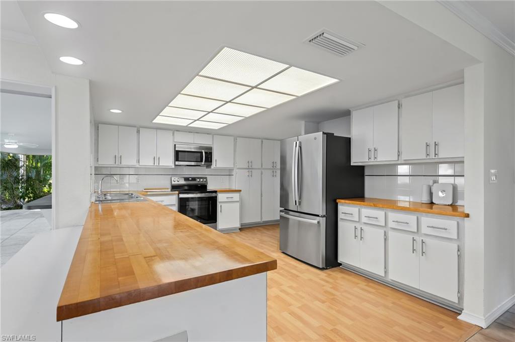 Rarely available in Naples Bath and Tennis Club, this beautifully maintained residence offers timeless charm and a serene setting with tranquil lake views. Freshly painted inside and out and featuring a brand new roof, the home also includes new electric service, two AC units, and a water heater installed in 2016, providing added peace of mind. A welcoming double-door entry opens to 2,720 square feet under air, thoughtfully designed for comfortable living and effortless entertaining. This custom-built home offers three bedrooms and three full baths, with well-defined living spaces that include a living room, dining room, family room, kitchen, hobby room, and laundry room. The open kitchen and family room feature updated appliances, including a stove, dishwasher, and refrigerator, along with recessed lighting, professionally installed baseboards and trimwork throughout, new blinds, and a carpet-free interior for a clean, move-in-ready feel. Just off the kitchen, a greenhouse-style hobby room adds flexible space, along with a convenient pass-through window to the lanai. Sliding glass doors from the primary bedroom, living room, and family room provide seamless access to the outdoor living area and showcase peaceful lake views. The private primary suite features a huge walk-in closet and an ensuite bath with a zero-entry shower, dual vanity, and separate water closet. A hall bathroom includes a jetted tub, and a third bath offers direct access from the lanai, ideal for outdoor entertaining. New toilets throughout the home add to the thoughtful updates. Outdoors, the very private setting is surrounded by lush tropical landscaping and enhanced by new exterior lighting, all overlooking the serene lake. The large, covered screened lanai creates an inviting space for gatherings or quiet mornings enjoying beautiful sunrises. The side-load, two-car garage features a new epoxy floor, while the circular driveway offers ample parking beneath a striking oak canopy. Naples Bath and Tennis Club is home to the Emilio Sanchez Tennis Academy, with optional membership available. Ideally located just four miles from Naples’ beautiful beaches, close to shopping and dining, approximately 10 minutes from Naples Airport, and about 35 minutes from Southwest Florida International Airport, this home offers easy access to everything Naples has to offer.