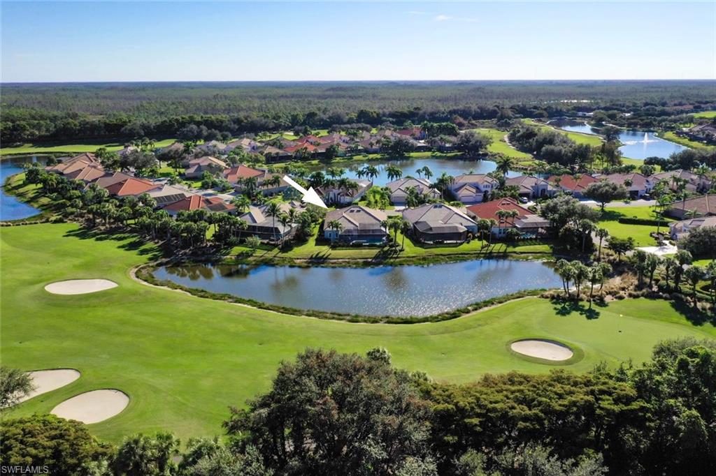 Welcome to Whispering Ridge at Copperleaf Golf Club—where luxury and lifestyle come together. This beautifully maintained Pinehurst Model, one of the community’s largest and most desirable floorplans, offers sweeping water and golf course vistas that immediately capture your attention from the moment you enter. Designed for both everyday comfort and elegant entertaining, the expansive living and family rooms flow seamlessly to a spacious screened lanai, creating a true indoor-outdoor lifestyle. Here, you’ll enjoy a newly refinished pool, updated tile, and refreshed pool deck, all set against a tranquil backdrop of fairways and shimmering water. The centrally located kitchen is the heart of the home, thoughtfully appointed with granite countertops, custom wood cabinetry, a generous center island, and abundant storage—perfect for hosting gatherings or casual meals alike. The primary suite is a private, spa-like retreat with direct access to the pool deck, an oversized walk-in closet, and a luxurious bath featuring a soaking tub and separate shower. Two spacious guest bedrooms and two full baths are tucked away on the opposite side of the home, offering privacy and comfort for visitors. A dedicated office with custom built-ins provides an ideal work-from-home space and is easily convertible into a fourth bedroom when additional accommodations are needed. This one-owner home has been meticulously cared for and offers peace of mind with a new roof (2022), HVAC system (2022), and water heater (2022), all located in a no flood zone. Copperleaf at The Brooks is one of Southwest Florida’s premier bundled golf communities, offering residents exclusive access to a Gordon Lewis–designed championship 18-hole golf course, tennis courts, a state-of-the-art fitness center, and a recently remodeled, award-winning clubhouse with both fine and casual dining. Optional membership to the Commons Club provides private beach access and additional dining and lifestyle amenities. Ideally located just minutes from RSW International Airport, Coconut Point, Miromar Outlets, and a wide array of shopping, dining, and healthcare options, this exceptional home delivers the perfect blend of luxury, convenience, and resort-style living.