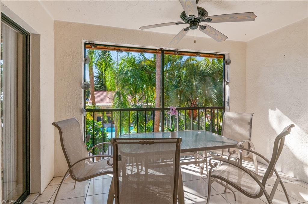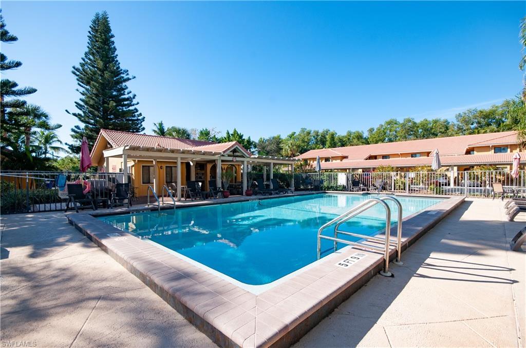 Beautifully updated condo located in the desirable, Spanish style, gated community of Citadel. Enjoy tranquil pool views from the private screened lanai, complemented by cathedral ceilings that enhance the open, airy feel. The open-concept kitchen features blonde maple cabinetry, granite countertops, and attractive newer appliances — all included, along with a stacked washer and dryer for added convenience. The primary suite offers a custom, updated tiled walk-in shower and private lanai access through sliding patio doors, creating a peaceful retreat. A split-bedroom floor plan provides excellent privacy, with the second bedroom thoughtfully separated from the primary suite. The guest bath includes a tiled tub/shower combination. Additional upgrades include extra-wide base trim throughout, adding a refined, finished touch. Ideally situated with easy interstate access and just minutes from the vibrant, growing downtown Bonita Springs, this condo offers both comfort and convenience in one of the area’s most sought-after locations.
