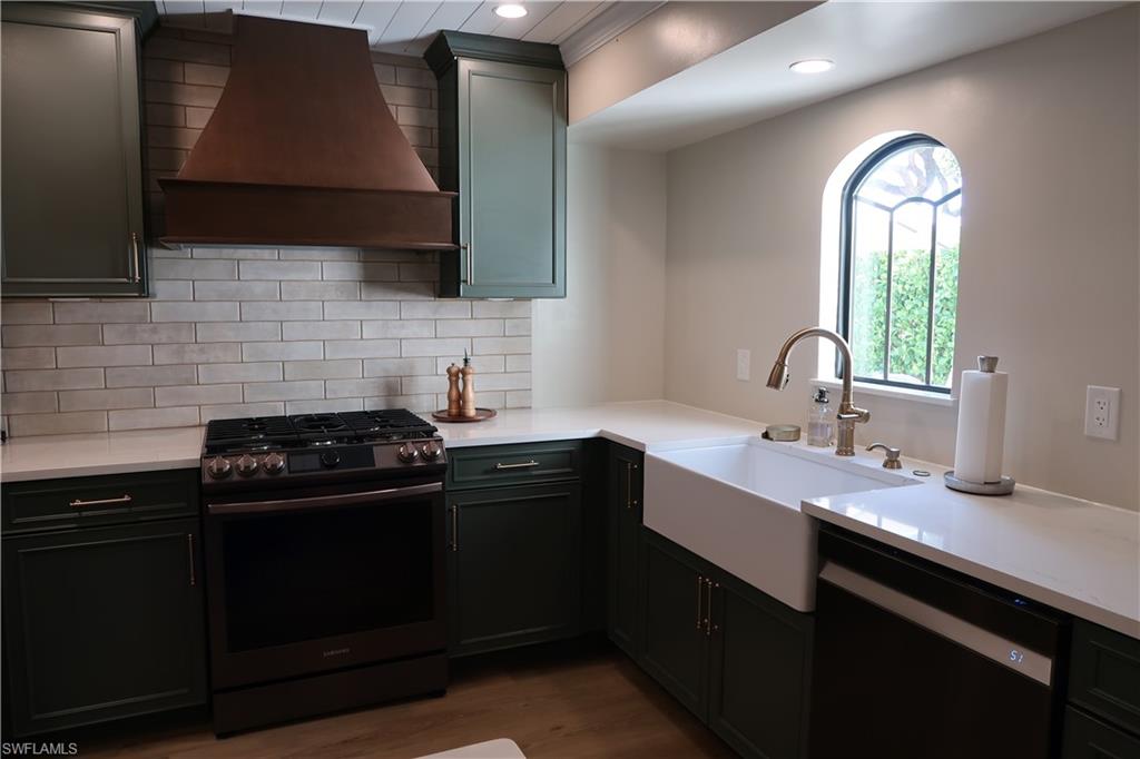 Step inside this recently renovated hidden gem, located directly on the canal with GULF ACCESS! Enter into a beautifully designed living room space, featuring a custom built-in with a 55” TV mount, plywood construction cabinets, and custom trim and moulding. The chef’s kitchen is equipped with Samsung Bespoke Collection appliances in Tuscan Steel, custom plywood cabinetry, quartz countertops, and a stunning 36” stained mahogany wood range hood, with a commercial grade exhaust vent. Continue into a custom built-in laundry center with an inset LG washer and dryer tower inside mudroom. Then step outside to a 200 square foot paver patio. Outside you will find a new 10,000 pound BOAT LIFT with a Gem Remote System. Home is equipped with a brand new hurricane-rated garage door, hurricane windows and doors, all new PEX plumbing with water distribution panel, irrigation system, a GREE mini split system with individual units for each room (control your level of comfort within each room individually), and a 18KW electric tankless water heater. Home is wired for fiber internet with Cat6 cable throughout. Home is located 2.5 miles from US 41, Coconut Point Mall, Restaurants, and Shopping. 25 minutes from RSW airport. Boat does not convey.