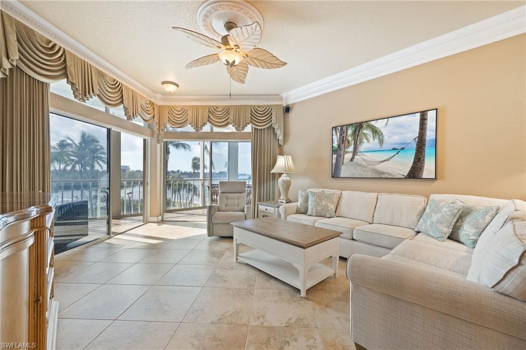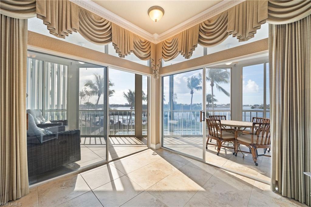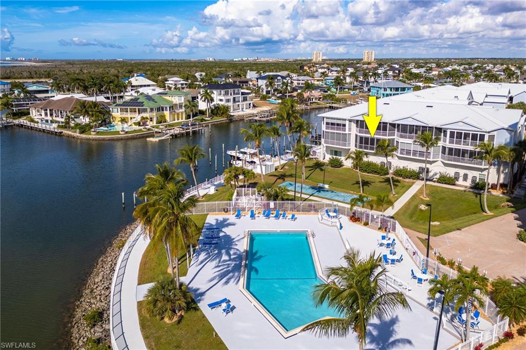 This is a Rare Offering of a 3 Bedroom, 2 Bath Bay Front Luxurious Unit and Deep Water Channel, that will take You to Gulf Waters, or the White Sand Beaches of Fort Myers Beach, Sanibel or Captiva Island. Under Building Parking, Luxurious Member lounge, Workout Room, Bay Front Tropical Pool, and even Your Boat Dock are for You to use. This Unit has been designed by the previous owner to have a large formal dining room, which can be converted to the original third bedroom. High ceilings, Large Master Suite, Walk-In Closets, Spectacular Sunsets, Panoramic Views from Your enclosed lanai, are all part of living in the newest building in Boardwalk Caper called the "Fortress". Whether you enjoy fishing, boating, kayaking, paddleboarding, swimming, or just strolling along the half a mile lighted boardwalk watching for dolphins, this home provides a great place to start your next Florida memories.