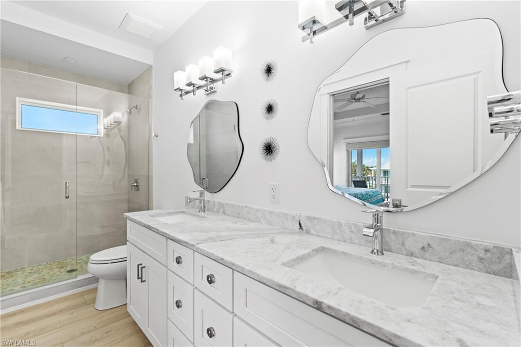 Experience the epitome of coastal luxury on Fort Myers Beach. Completed in August 2020 on the prestigious North End just steps from the beach, this TURNKEY residence offers 5 bedrooms, 5 full baths, your own private elevator and an array of upscale features designed for both comfort and entertaining. Inside, an expansive layout awaits, with two inviting living rooms, an open concept kitchen and great room floor plan complemented by a separate formal dining area, and a massive breakfast bar island. The gourmet kitchen is a chef’s dream, featuring a gas range, double wall oven, and a walk-in pantry. The residence also features two primary suites, one on each level, each with spa-inspired baths, one offering a standalone soaking tub and shower, and the other boasting a spacious double-head walk-in shower. Recent enhancements elevate the home's appeal, including a full home audio/visual system that enriches the ambiance, power shades in living area and primary bedroom, and tasteful shiplap accents throughout the living spaces that evoke a refined, luxury coastal feel. Outdoor living shines with multiple balconies that capture breathtaking views, enjoy sunrises over Estero Bay and unwind with spectacular sunsets over the sparkling Gulf waters. A downstairs game room opens directly to a saltwater heated pool overlooking the canal with floating jet ski docks and ample room for a boat. Ideal for both personal retreats and savvy investments, weekly rentals are allowed. This retreat invites you to embrace a lifestyle of unparalleled luxury, convenience, and coastal elegance, a residence you simply cannot miss.