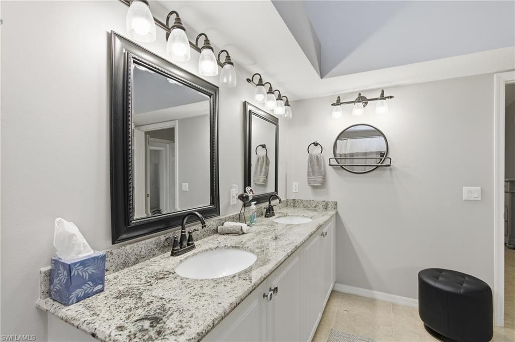 Welcome to your dream home! Fabulous 3rd Floor Condo with Lake and Preserve Views in The Gardens at Bermuda Links, within the Bonita Fairways Gated, Golf Community. This charming 2 bedroom, 2 bath condo, located on the top floor of The Gardens at Bermuda Links, offers stunning views and an abundance of natural light. Yes, there are elevators! There is NO CARPET in this unit, this home features beautiful, neutral tile flooring. It’s even tiled on the spacious lanai where you can relax and take in the peaceful lake view and lush preserve, teeming with wildlife. For added peace of mind, the lanai is equipped with an electric hurricane shutter, allowing you to leave your outdoor furniture in place if you're a seasonal resident. Inside, you'll appreciate the elegant granite countertops in both bathrooms, as well as in the kitchen, which also boasts a breakfast bar perfect for casual meals or entertaining guests. Kitchen has a walk-in pantry, Convection Microwave and Bosch dishwasher. Washer dryer are located in the kitchen area. The guest bedroom is equipped with a Murphy Bed, making the space versatile as a den or office when not being used as a bedroom. The home is being sold Furnished, turnkey, making it easy for you to start enjoying life here immediately. Just bring a toothbrush and your golf clubs! The condo comes with a coveted garage—ideal for extra storage and convenient parking. Being on the top level means not only sweeping views and abundant natural light but also higher ceilings that create a spacious and airy feel. You’ll have your choice of accessing your home via stairs or the building’s convenient elevator. Residents of Bonita Fairways enjoy a golf course with public access, so you can embrace the golfing lifestyle without the high fees often associated with private courses. Community pool and spa just steps away and the larger amenity center is a short stroll or bike ride away. The community is a hidden gem, offering lush tropical landscaping, numerous amenities, and easy access to everything Southwest Florida has to offer. Located just a short drive from the beaches, shopping, dining, and the airport, this condo offers the perfect blend of convenience and tranquility. Whether you're here seasonally or year-round, this is the place you’ve been looking for. Call today to schedule a tour and make this slice of paradise your own!