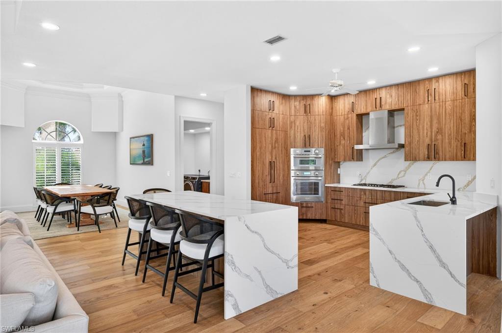 On a premier golf course lot in The Dunes, this exquisite Sanibel Island home blends modern luxury with timeless Florida charm. Completely reimagined and rebuilt from the studs out, the residence features high-quality finishes, a redesigned open floor plan, and sweeping lake and fairway views from the main living areas. The bright, coastal-inspired interior includes wide-plank wood flooring, a designer kitchen with quartz waterfall countertops, custom cabinetry and top-tier appliances. The spacious primary suite serves as a private retreat with a spa-style bath featuring a freestanding soaking tub, walk-in shower and elegant finishes. Multiple living and dining spaces flow seamlessly toward the expansive screened lanai, where a resort-style pool, raised spa, stone-accented water feature, and outdoor kitchen create an ideal setting for entertaining or relaxing in the island breeze. Oversized sliders enhance the indoor-outdoor connection and fill the home with natural light. Additional highlights include updated guest suites, remodeled baths, lush tropical landscaping and a circular paver driveway framed by mature palms. In The Dunes Golf & Tennis Club community, this like-new home offers proximity to Sanibel’s world-famous beaches, bike paths and island amenities. A rare opportunity to enjoy a fully rebuilt, modern coastal residence in one of Sanibel’s desirable neighborhoods.