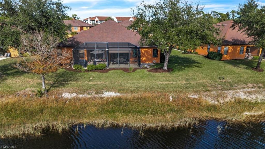 Everything you want and everything you need is right here at 3725 Pino Vista Way in Estero, FL! Enjoy the best of both worlds in this stunning lake front villa with an attached two car garage that lives like a single-family home, without the worry of exterior maintenance. This better-than-new upscale villa offers two HUGE bedrooms, a den that can be used as a third bedroom or office, & two full bathrooms. WAY TOO MANY UPGRADES TO LIST including a BRAND-NEW top of the line AC system, hot water heater, flooring, washer & dryer, mini-split AC in the garage, blown-in attic insulation and upscale light fixtures! NEW high end HURRICANE IMPACT WINDOWS AND SLIDERS...WOW! No need to worry about shutters here! Escape to your spacious master retreat complete with lake views, a garden tub, spacious walk-in shower, and HUGE walk-in closet. You will love this open floor plan offering a large eat-in kitchen with extra tall wood cabinets, black stainless-steel appliances, a large walk-in pantry, & breakfast nook. Find serenity on your extended lake front lanai with a covered area & an extended retractable awning where you can enjoy peaceful fountain views and breathtaking sunsets. Your spacious backyard is surrounded by lush tropical landscaping, providing the tropical oasis that you have been dreaming of! Recently added attic steps create easy access to additional storage as well. This luxury property is found in the beautiful, gated community of Terra Vista complete with a large community pool and clubhouse! NOT IN A FLOOD ZONE (ZONE X), VERY LOW HOA fees and NO CDD FEES! ALL OF THIS in a PERFECT LOCATION WEST of US-41, close to shopping & dining, and premier healthcare. Plus, easy access to US-41 & I-75. HURRY-- before this gorgeous property is just another SOLD that you missed out on!