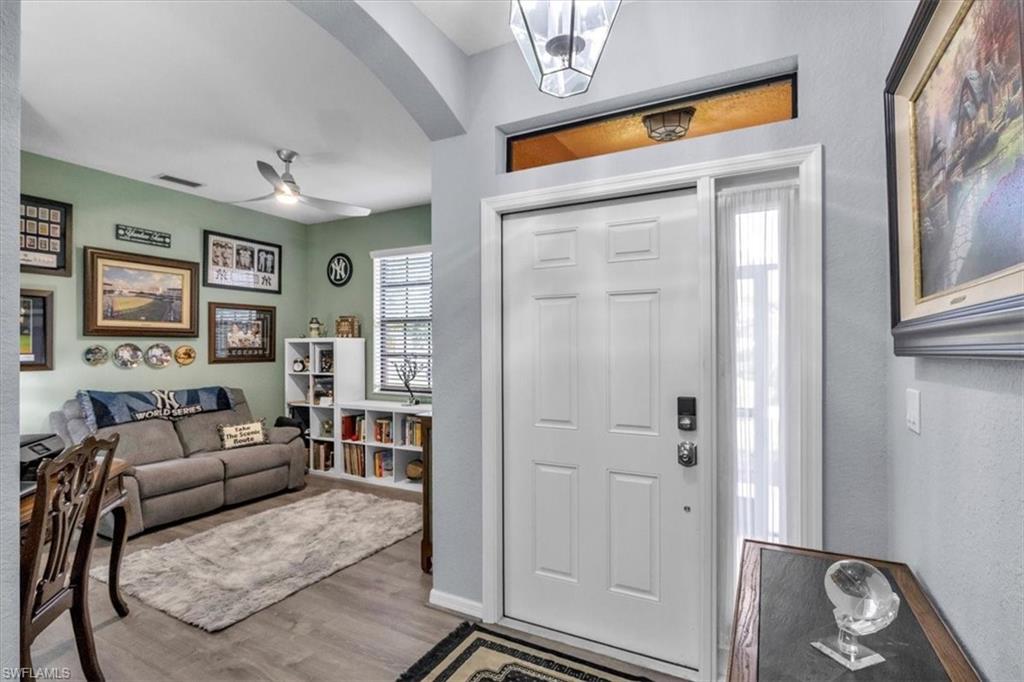 Welcome to your new home at 3717 Pino Vista Way in Estero, FL! You will love this stunning lakefront paired villa that lives like a single-family home, combining privacy with low maintenance living. Built by Kimball Hill Homes in 2007, this RARELY AVAILABLE split floor plan offers many upgrades including Lifeproof Pergo flooring, an expanded screened lanai complete with a large retractable awning, decorative tile back splash, Wi-Fi thermostat, freshly painted exterior & luxury lighting. This highly desirable Bonaire Model offers two HUGE bedrooms and a large versatile den that can be used as a third bedroom or office, and two full bathrooms. The chef of your family will love the expansive eat-in kitchen with extra tall wood cabinets, a large walk-in pantry, upgraded stainless steel appliances & breakfast nook. The split floor plan ensures privacy, with the spacious primary suite tucked away in the back of the home—featuring tranquil lake views that make every morning feel serene. The primary bathroom includes a large walk-in closet, dual vanities, garden tub, and a separate spacious shower. Relax on your covered lakefront lanai where you can enjoy stellar landscaping, peaceful fountain views and breathtaking sunsets. Plenty of storage space including walk-in closets throughout and an oversized attached two car garage. This luxury property is found in the beautiful Terra Vista of Estero, a gated and well-kept community WEST of US-41-- yet NOT IN A FLOOD ZONE (Zone X) and has never flooded! Terra Vista community amenities include a large community pool and sundeck with shaded lounge area, barbecue grill, and a clubhouse with kitchen. LOW HOA fees and NO CDD fee! PERFECT LOCATION--Just minutes away from beaches, shopping & dining, Coconut Point Mall, Miromar Outlet Mall, Hertz Arena, FGCU and RSW Airport! Quick and easy access to both US-41 & I-75. HURRY--It just makes sense to call this great Estero villa your new home!