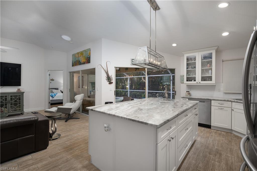 POOL home available in the Villages at Country Creek, a bundled golf community! This open concept home showcases custom upgrades throughout, & a thoughtfully designed layout perfect for entertaining. The spacious kitchen features a large island overlooking the great room, breakfast area, and rear lanai. The gourmet kitchen boasts soft-close cabinetry, stainless steel appliances, quartz countertops & a beautiful tile backsplash. The primary suite offers a walk-in closet with built-in cabinetry and an upgraded bath with dual sinks, custom vanity, linen storage, and a beautifully tiled shower with glass enclosure. The guest bath has also been updated with a vanity and quartz countertops. The house comes equipped with a whole house generator powered by an underground propane tank. Den has a closet & window can easily be converted into a 3rd bedroom. Country Creek is a most welcoming community with an 18-hole golf course with low cart fees, a full service restaurant and bar. Social activities are abundant in this friendly community offering 5 pools, a brand new spa for 10, golf and tennis leagues, bocce leagues, Wii bowling and a vibrant bar, a perfect place to watch sports! Other activities include book clubs, knitting circles, card clubs, volunteer groups and endless celebrations at the clubhouse. Location couldn't be better, between Naples and Ft. Myers. Minutes RSW Airport, Coconut Point, Miramar Outlets, & of course, all the beautiful beaches in Southwest Florida.